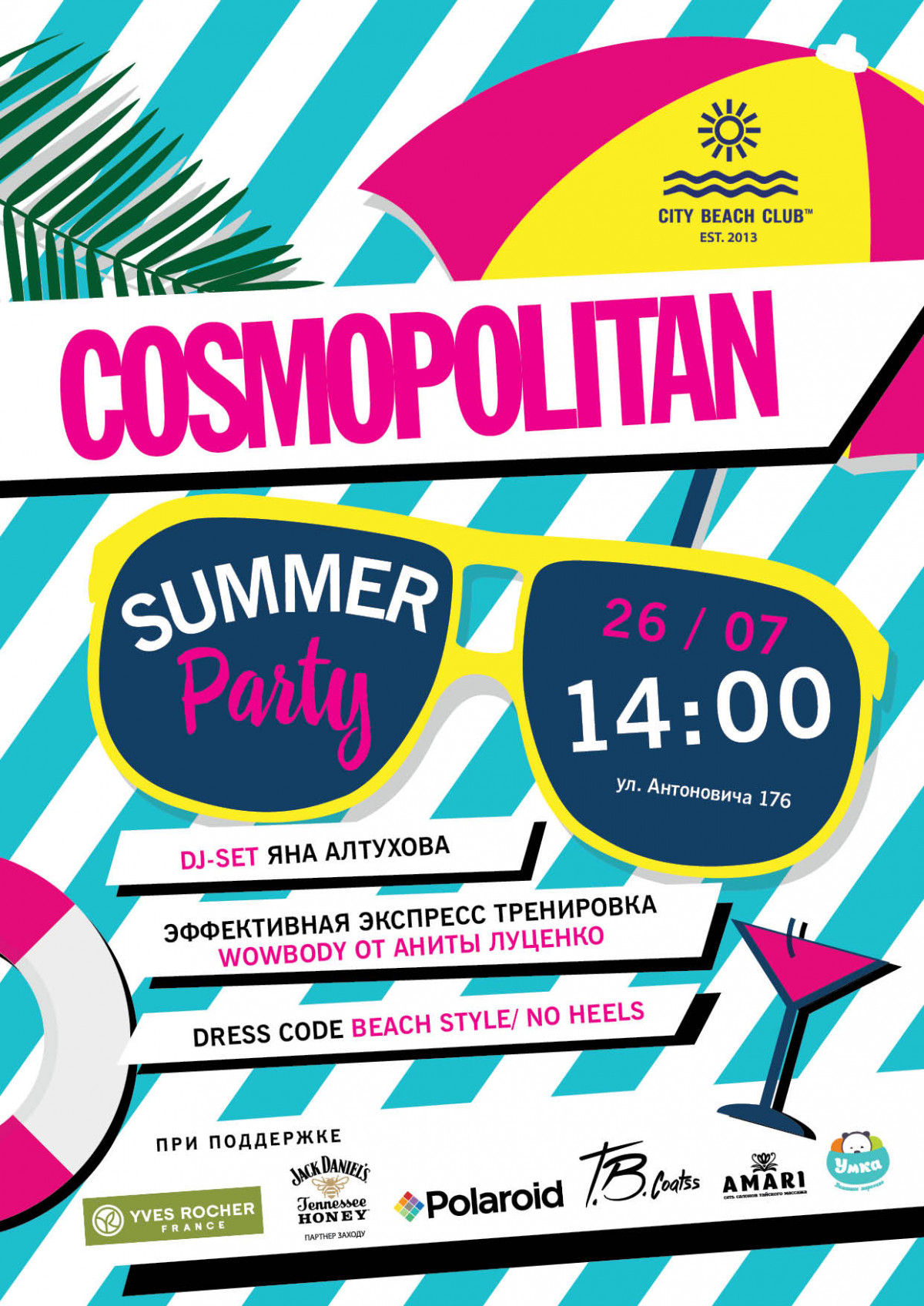 Вечеринка состоится 26-го июля в 14:00 по адресу: ул. Антоновича, 176, City beach club.