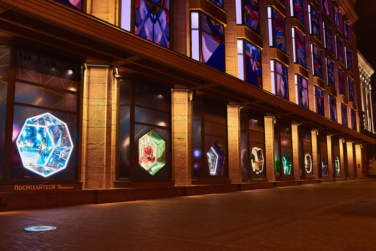 Це перші цифрові вітрини ЦУМ з використанням екранів. Особливістю стала інтерактивна вітрина, яка дозволяє кожному бажаючому спробувати себе в ролі головного героя калейдоскопу. Всередині конструкції встановлена камера з датчиком руху, зображення людини в реальному часі проектується на екран у вітрині. Інтерес відвідувачів підвищується ще й за рахунок багаторазового відтворення і дублювання зображення в калейдоскопі.