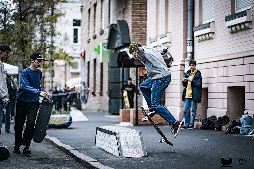 20 октября одна из старейших улиц Киева Рейтарская снова превратилась в место встречи для молодых и креативных. Первый Район №1 Block Party, который состоялся в июле, показал, что атмосферу праздника создают именно люди – сознательные, красивые, готовые учиться, узнавать первыми о новинках в музыкальной, модной, гастро- и beauty-сфере. Во второй раз на Рейтарской было представлено еще больше локальных бизнесов, каждый из которых подготовил свою активность: здесь можно было познакомиться с новыми коллекциями Riot Division, Katimo Clothes, Kapkan, Styleinsider Store и T-Friends Store, послушать научпоп-лекцию в галерее «Дукат», выпить коктейль в Haze и попробовать блюда, созданные специально для ивента от Зигзаг и MIRA cafe, сделать стрижку в Chop-Chop или Haze, сразиться в турнире по настольному теннису от Hardtennis, выпить кофе в «Каштан», получить пленочный портрет от Романа Пашковского, покататься на скейте или просто понаблюдать за трюками других и, конечно же, потанцевать у сцены Plivka или пуститься во все тяжкие на Бабайкин-пати.