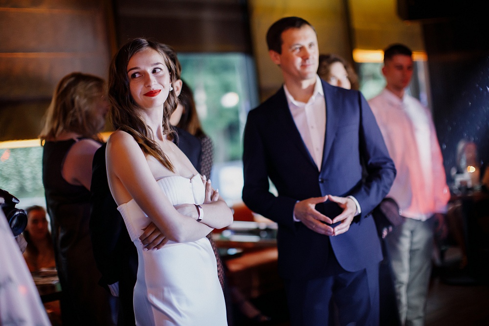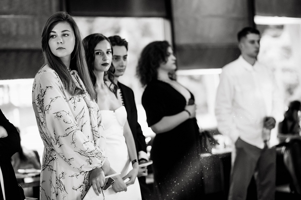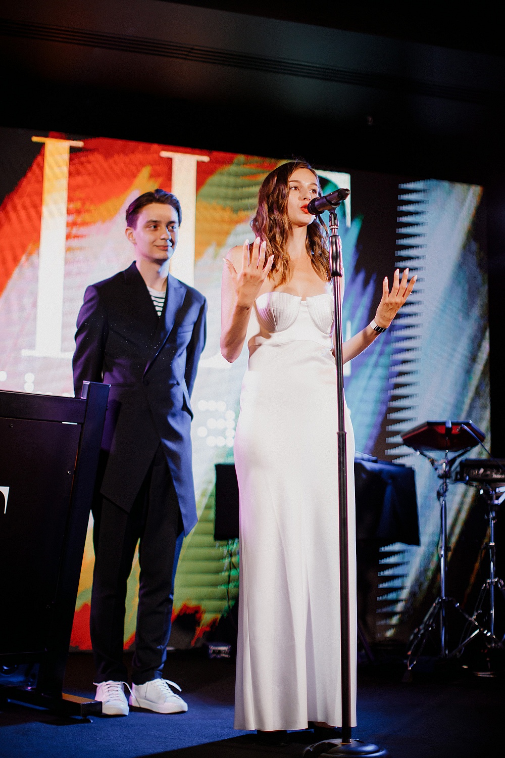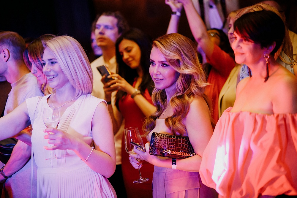 Угощало немецкое вино Latinium – благодаря дизайну его бутылок вечер прошел в лазурных тонах.
