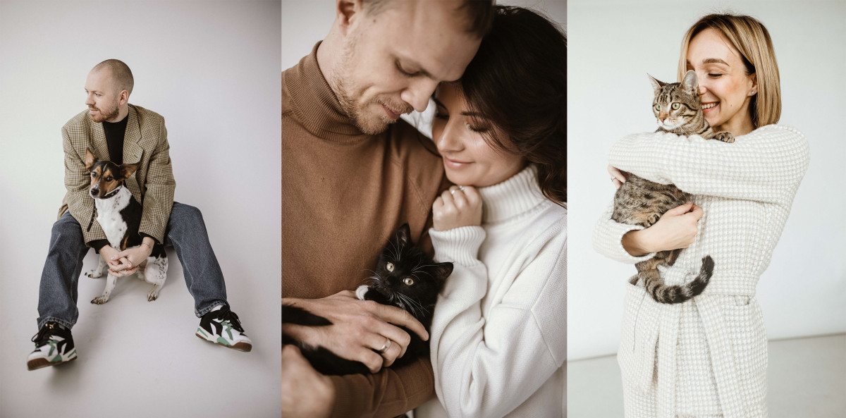 Дмитрий Дир, Лена Мандзюк и основатели бренда One by One рассказали свои истории, чтобы привлечь внимание к теме бездомных животных и развеять страхи, связанные с их адопцией. Запечатлела героев с их питомцами фотограф Марина Карпий.