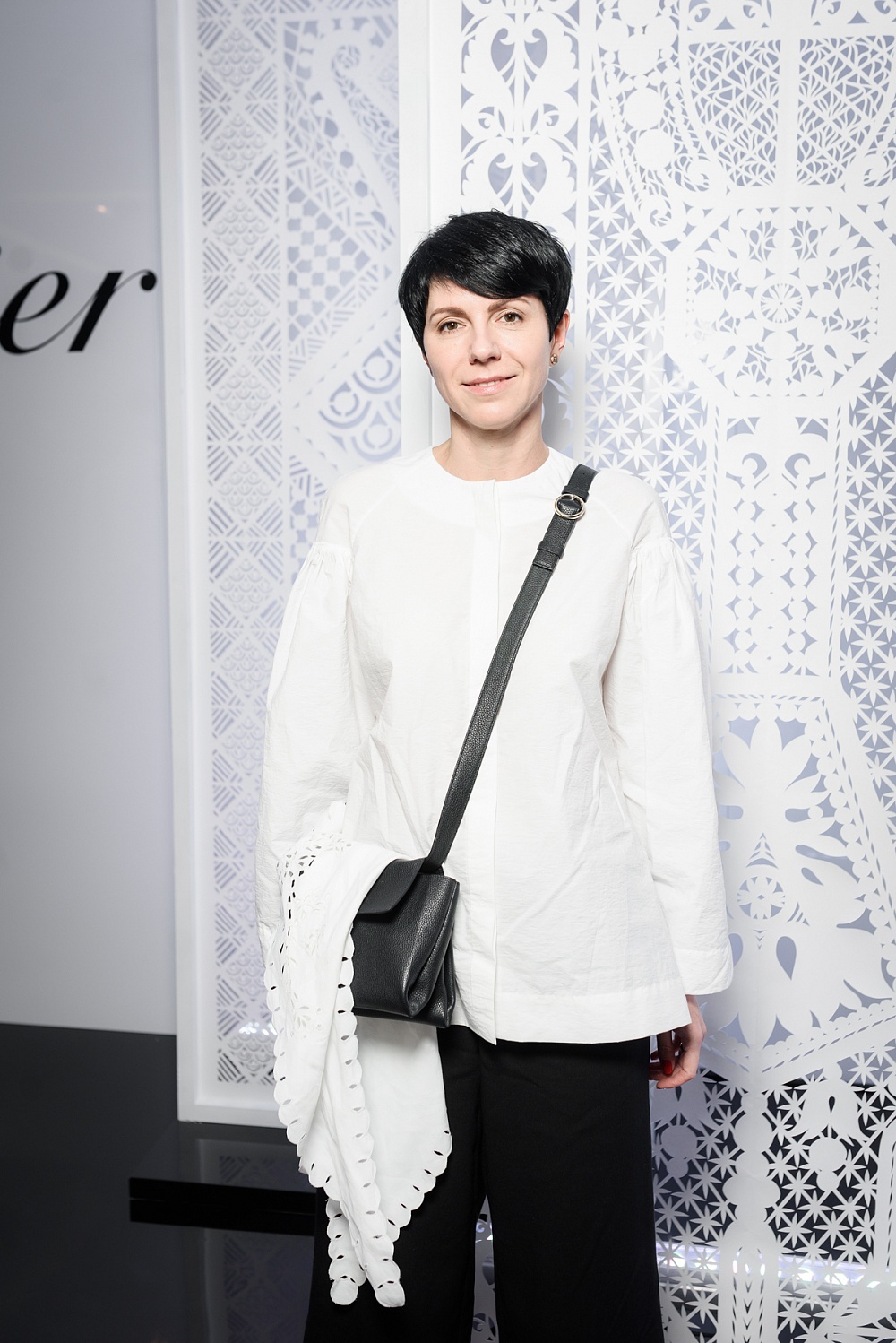 Презентацию проекта шести полотен-вытынанок дополнила созвучная коллекция украшений в бутике Cartier. Гостьями вечера стали: Надежда Елько, Ася Мхитарян, Екатерина Кулик, Наталья Череп, Мария Дидковская, Вера Титова, Марина Щербенко и другие.