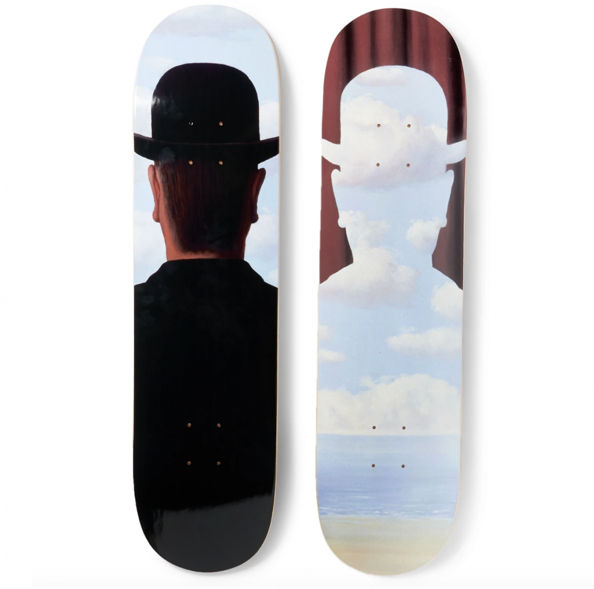 Бренд SkateRoom прогремел на весь мир благодаря своим коллаборациям с разными культурными институциями: скейты украшали работы Энди Уорхола, Кита Харинга и Жан-Мишеля Баския, теперь же поклонникам спорта и искусства предлагают модель с репродукцией «Декалькомании» Рене Магрита. Дайте две!