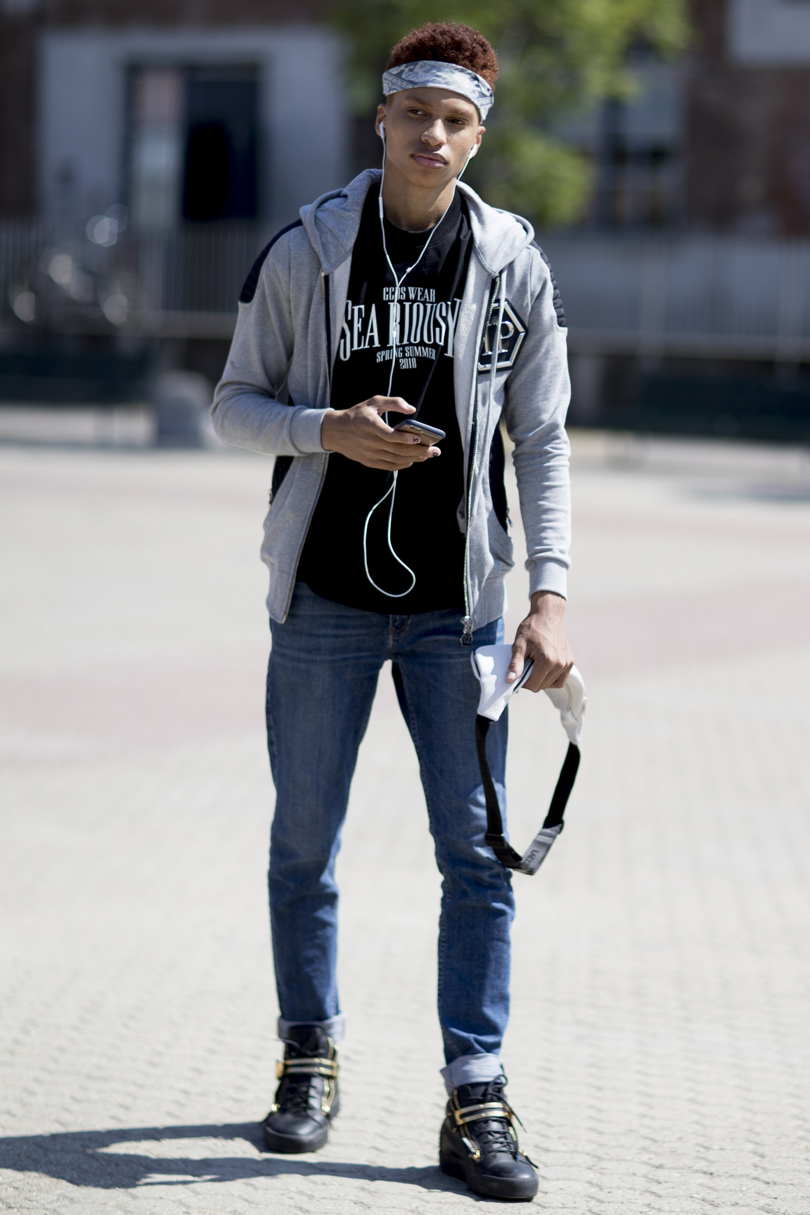 А якщо хочете поєднати свій повсякденний outfit з банданою так, щоб вона особливо не вкидалась в око – почепіть її на пояс. Коли ви одягаєте аксесуар на шию, голову або ж зап'ястя, вся увага переходить на нього. Натомість, розміщена на талії деталь, додасть гармонії образу і не сконцентрує всю увагу на собі. До того ж, все, що потрібно зробити – це пов'язати бандану на пояс або занурити один кінець у кишеню.