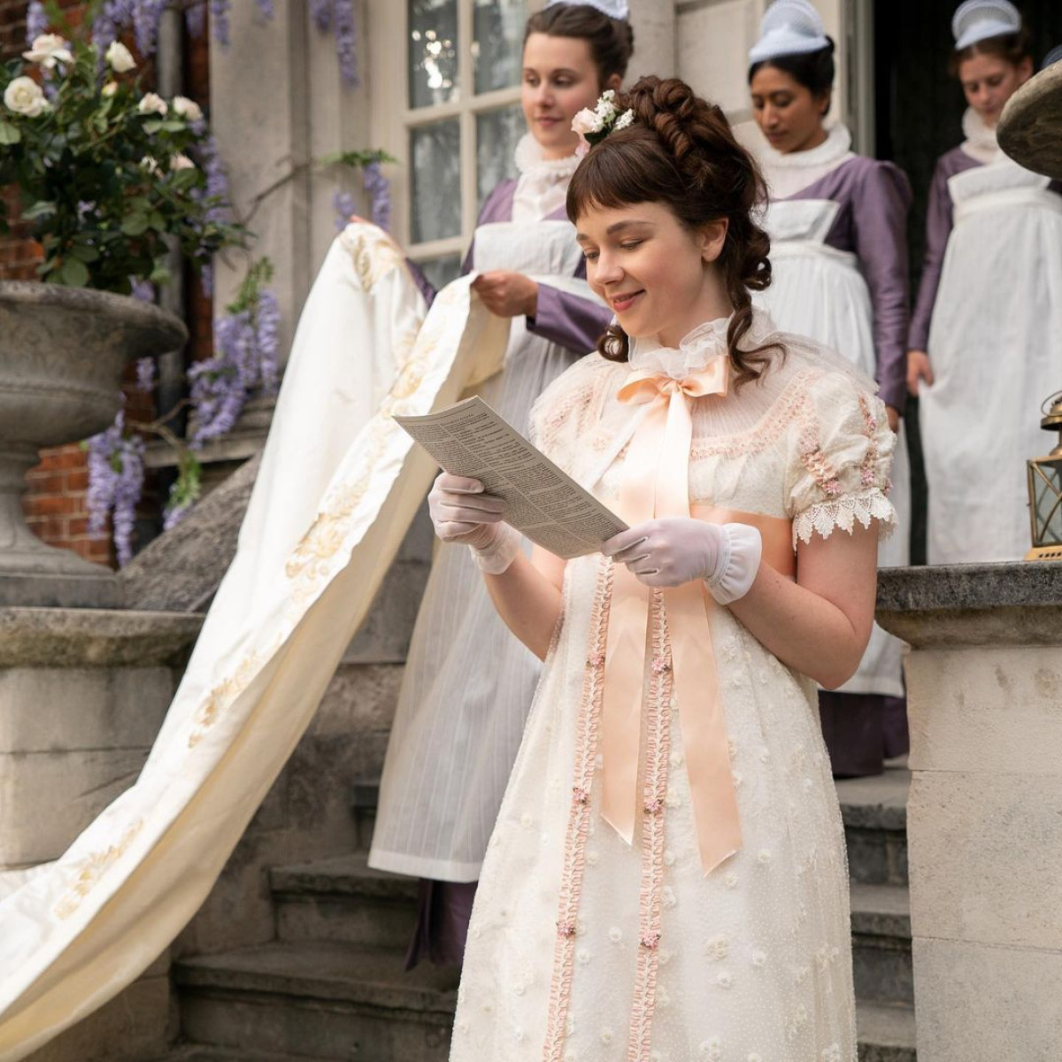 Сам серіал «Бріджертони» та його спін-оф «Королева Шарлотта» наповнений великим розмаїттям деталізованих костюмів, які переносять нас до світу Англії початку 1800-х років. Корсети, квіткові принти, діадеми, пишні бальні сукні та повсякденні моделі з короткими рукавами — ми із захопленням спостерігали за модними рішеннями художників з костюмів цих стрічок.