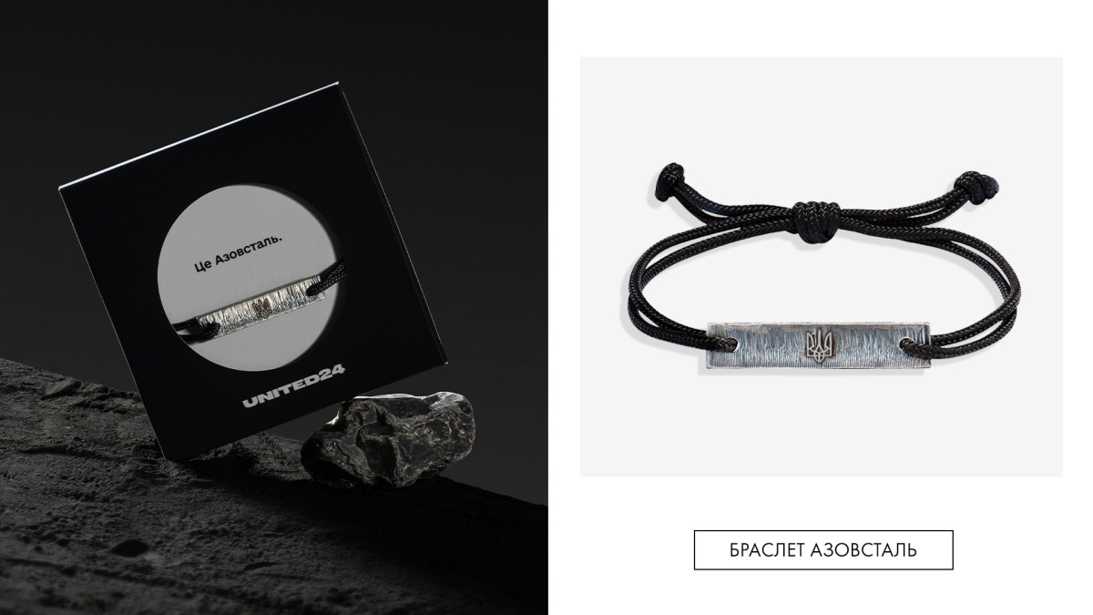 21. Браслет «Азовсталь» — легендарна прикраса, створена з останньої довоєнної партії сталі «Азовсталі» у партнерстві з UNITED24, Групою Метінвест та «Новою поштою». Цей браслет став символом незламності та об’єднав тисячі людей навколо допомоги ЗСУ. Проєкт, який почув увесь світ. Було випущено три наклади браслетів, а весь прибуток — понад 87 мільйонів гривень — передано на підтримку українських військових.