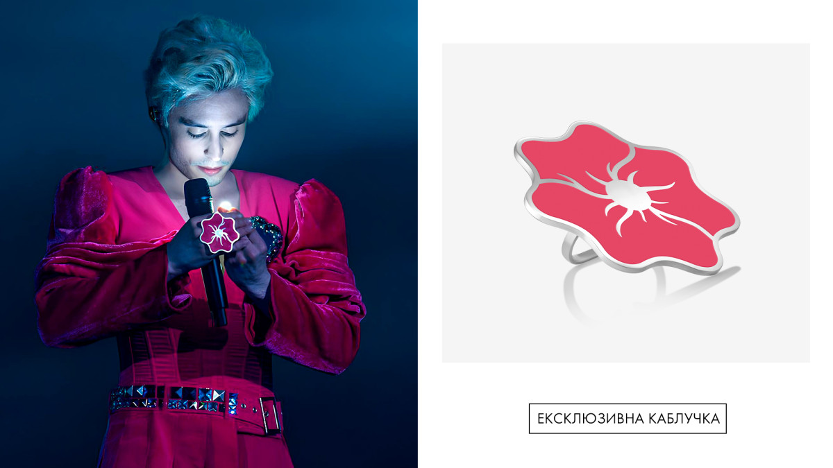 25. Каблучка-мальва — ексклюзивна прикраса, створена спеціально для сценічних образів гурту Ziferblat, що представив Україну на пісенному конкурсі «Євробачення» у 2025 році. Образи для музикантів розробив дизайнер FROLOV, а прикраси стали їхньою завершальною деталлю та частиною сучасної музичної історії країни.