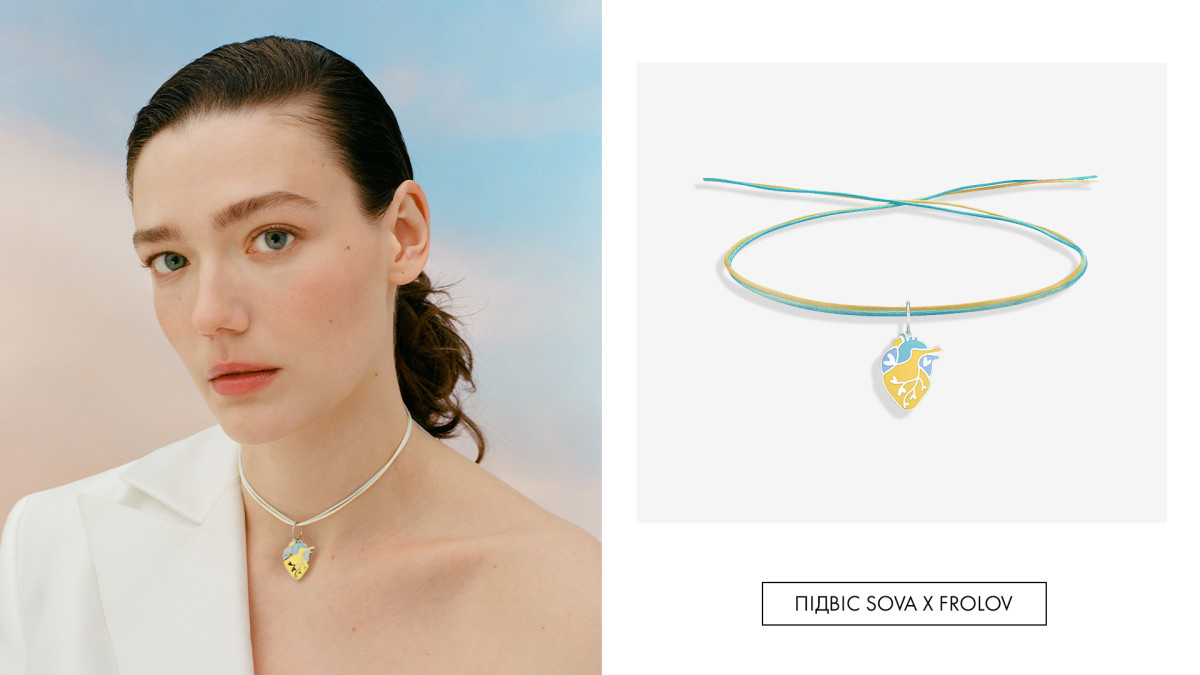 22. Благодійне серце SOVA x FROLOV — одна з найвпізнаваніших благодійних прикрас бренду SOVA у колаборації з дизайнером Іваном Фроловим. Лімітована серія зі 1000 підвісів із персональними номерами на звороті. Увесь прибуток з продажу було перераховано в медичний батальйон «Госпітальєри».