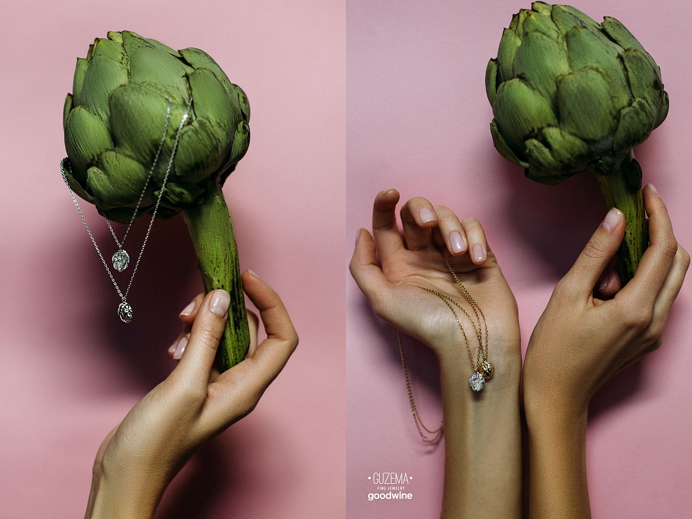 Ювелир Лера Гузема создала капсульную коллекцию украшений для Good Wine, в которую вошли серебряные подвески в форме граната, спаржи, голубики, авокадо и артишока. «Мы убеждены, что красота идет изнутри – из души и нашего тела. Коллекция Healthy and Beautiful – о здоровом образе жизни, символом которого для нас стали 5 продуктов. Подвески мы разделили их на две половинки, чтобы одну из них Вы могли подарить близкому для вас человеку, о котором заботитесь», – рассказывает о капсуле Лера.