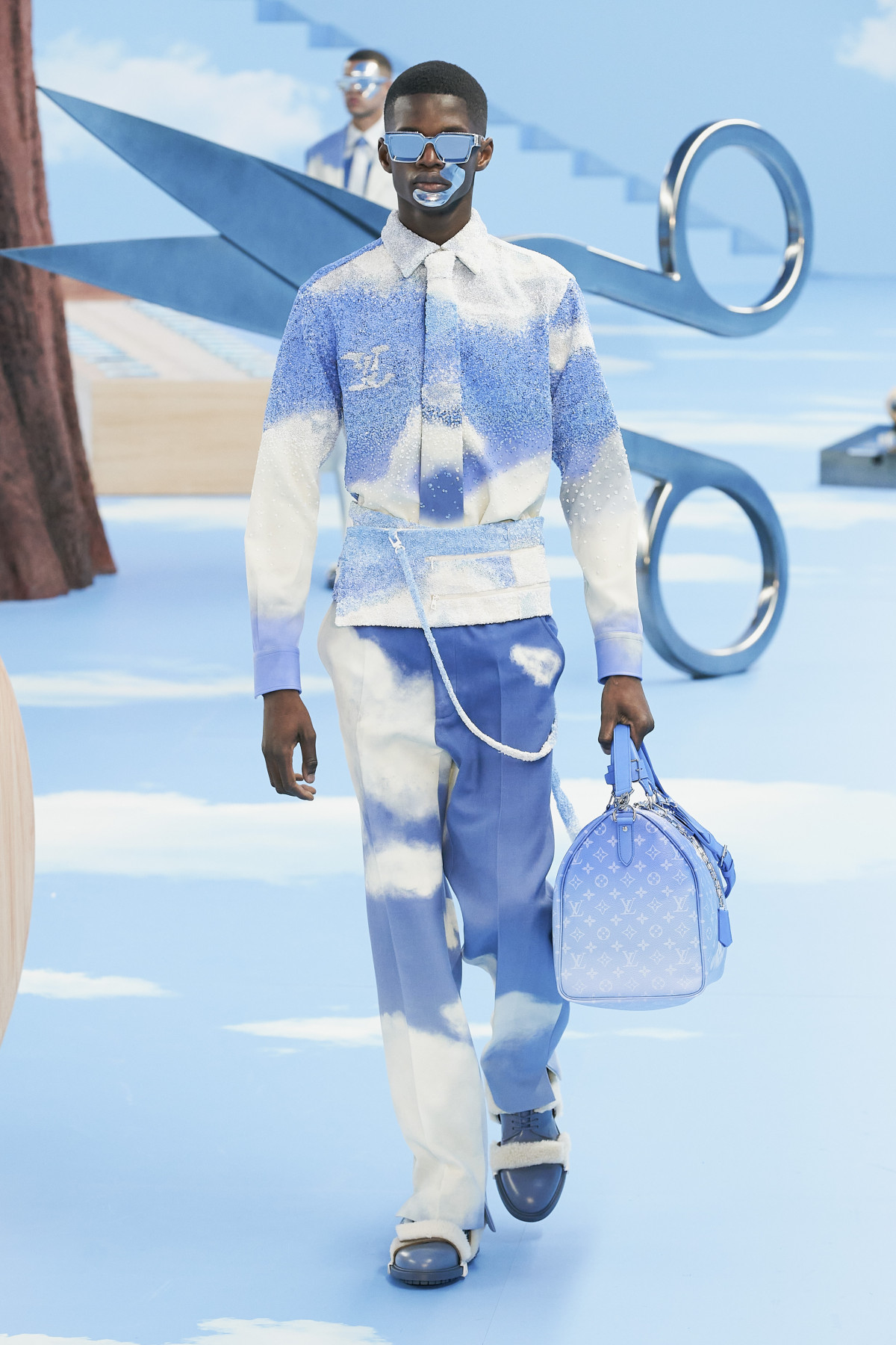 Элегантность и роскошь, присущие стилю Louis Vuitton, Вирджил заменил на функциональность и урбанизм. По подиуму прогуливались модели в безупречно сшитых мужских костюмах и с кожаными сумками на фоне нежно-голубого неба.