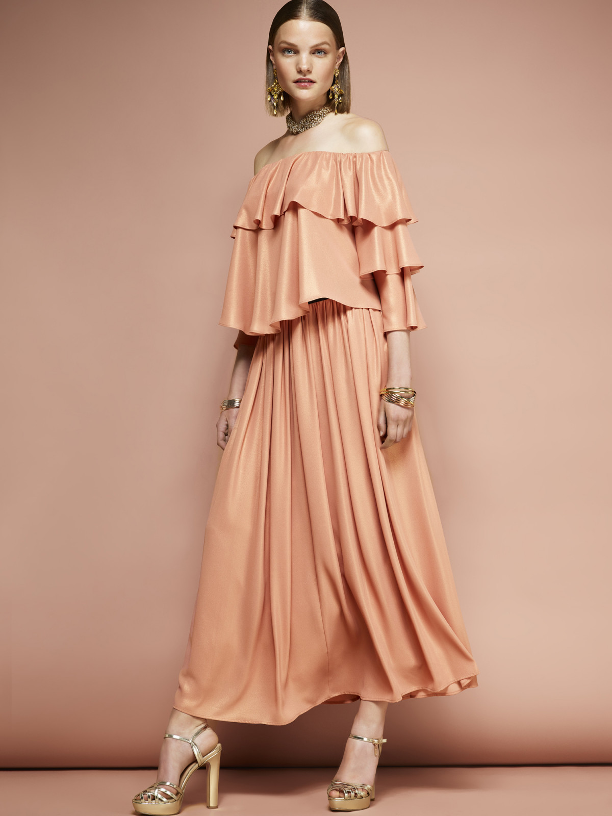 Богемное платье с рукавами-воланами, из струящихся тканей и цветочным орнаментом станет верным спутником на светских приемах и пляжных вечеринках. Такое платье прекрасно сочетается с тренчем цвета хаки и пиджаком от костюма.