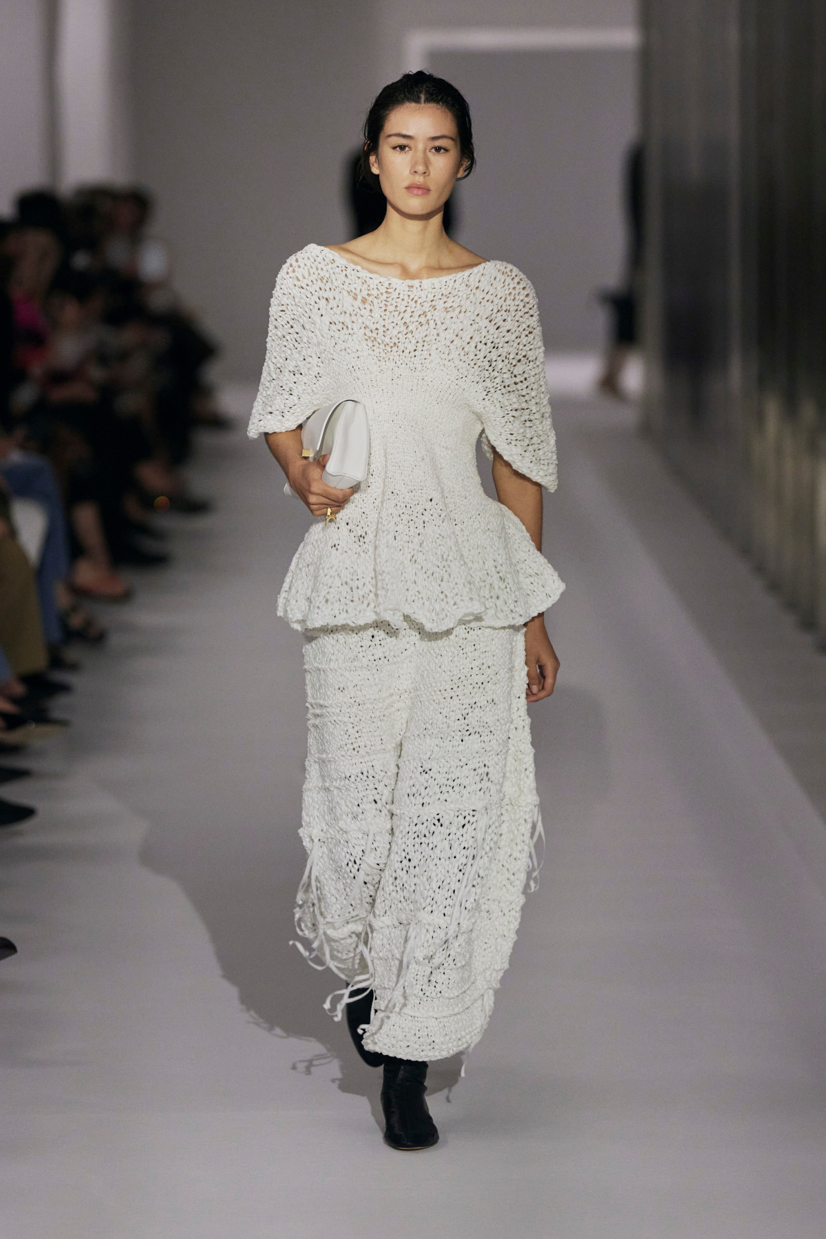 Перші образи, що складалися із чорних брючних комплектів, усе ще були відображенням традиційних дизайнів і стилю Голстейн, однак наступні поєднання все ж довели глядачам, що модельєрка готова виходити із зони свого комфорту. Поруч із відвертими чорними напівпрозорими спідницями та розмаїттям шкіри у верхньому одязі у колекції постали романтичні рожеві сукні, що за формою нагадували хмарини, ніжні в’язані сети, мереживні фартухи й топи з об’ємними сплетіннями, за виглядом подібні до квітів. Дизайнерка намагалася поекспериментувати з силуетами та новими для себе матеріалами — більш м’якими, витонченими й легкими, пропонуючи сучасним жінкам насамперед комфорт. Так, перед нами з’явилася лінійка, яка хоч і несе в собі зухвалу естетику Khaite, проте втілює й м’якші та тепліші мотиви.