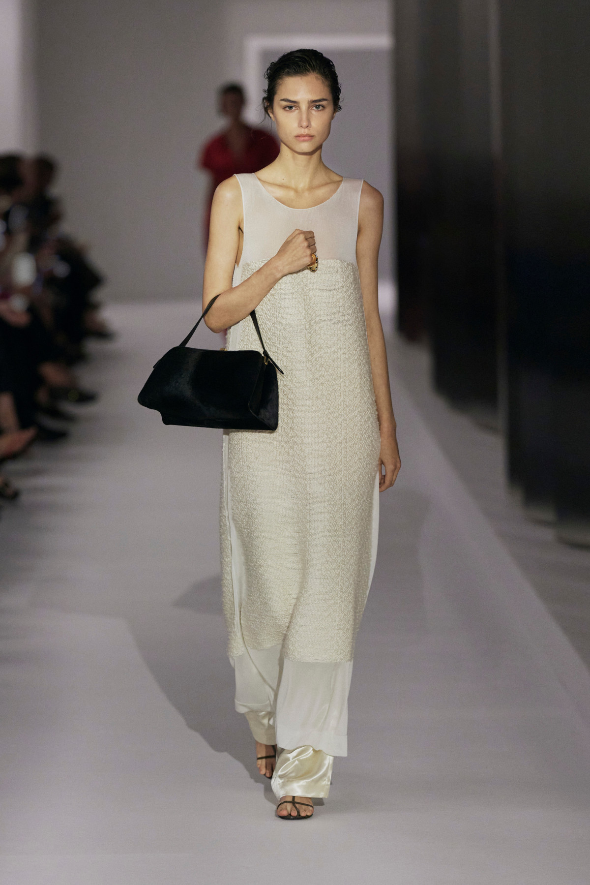 У новій колекції Кетрін Голстейн вирішила відійти від своєї звичної гостроти, якою наділяла речі Khaite, та продемонструвала м’якший підхід. «Мені здається, я просто відчуваю себе трохи тепліше в ці дні, трохи приземленіше. Можливо, це все через мого сина й те тепло, яке я отримую від нього. Саме тому такий настрій перейшов і до колекції», — поділилася за лаштунками дизайнерка.