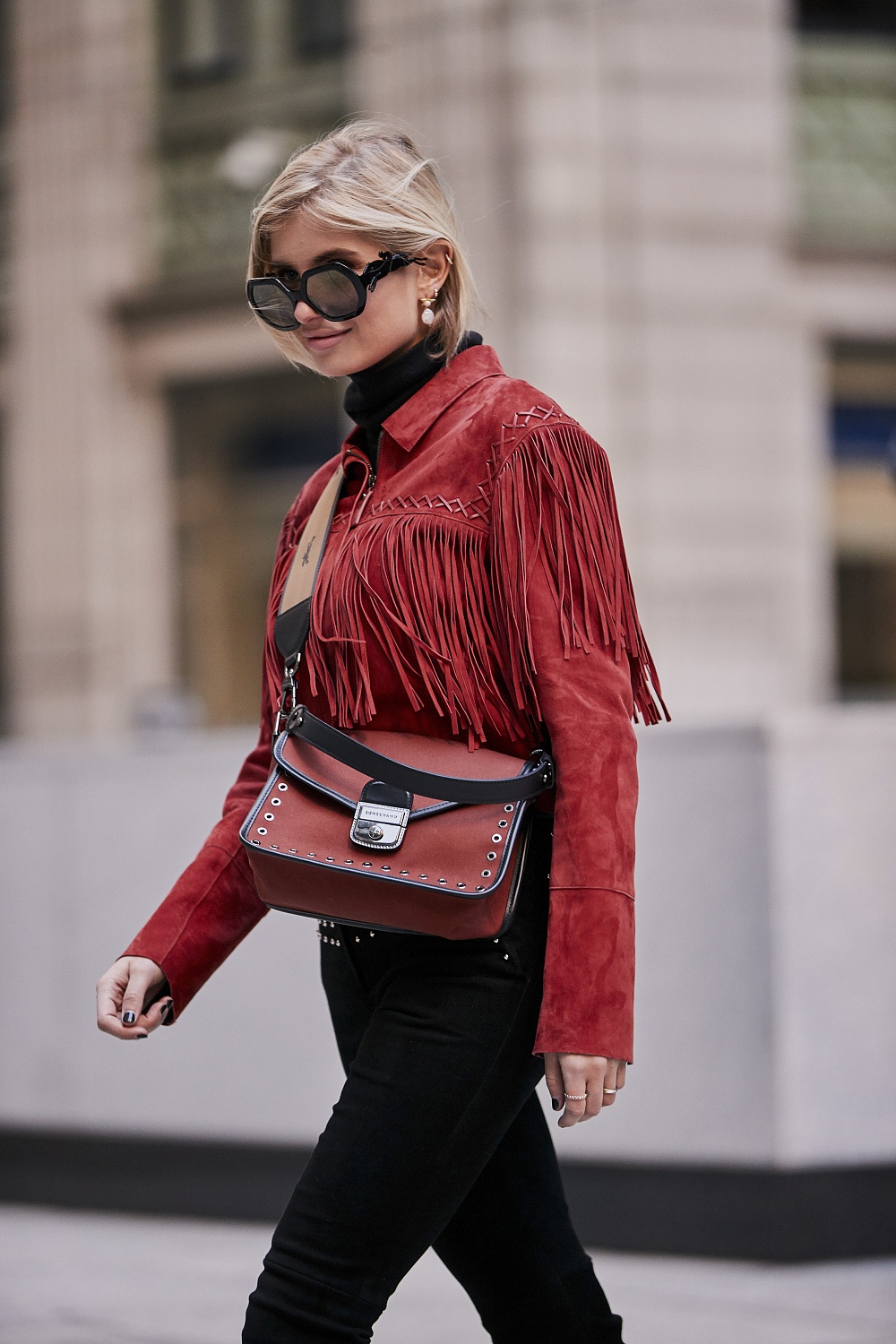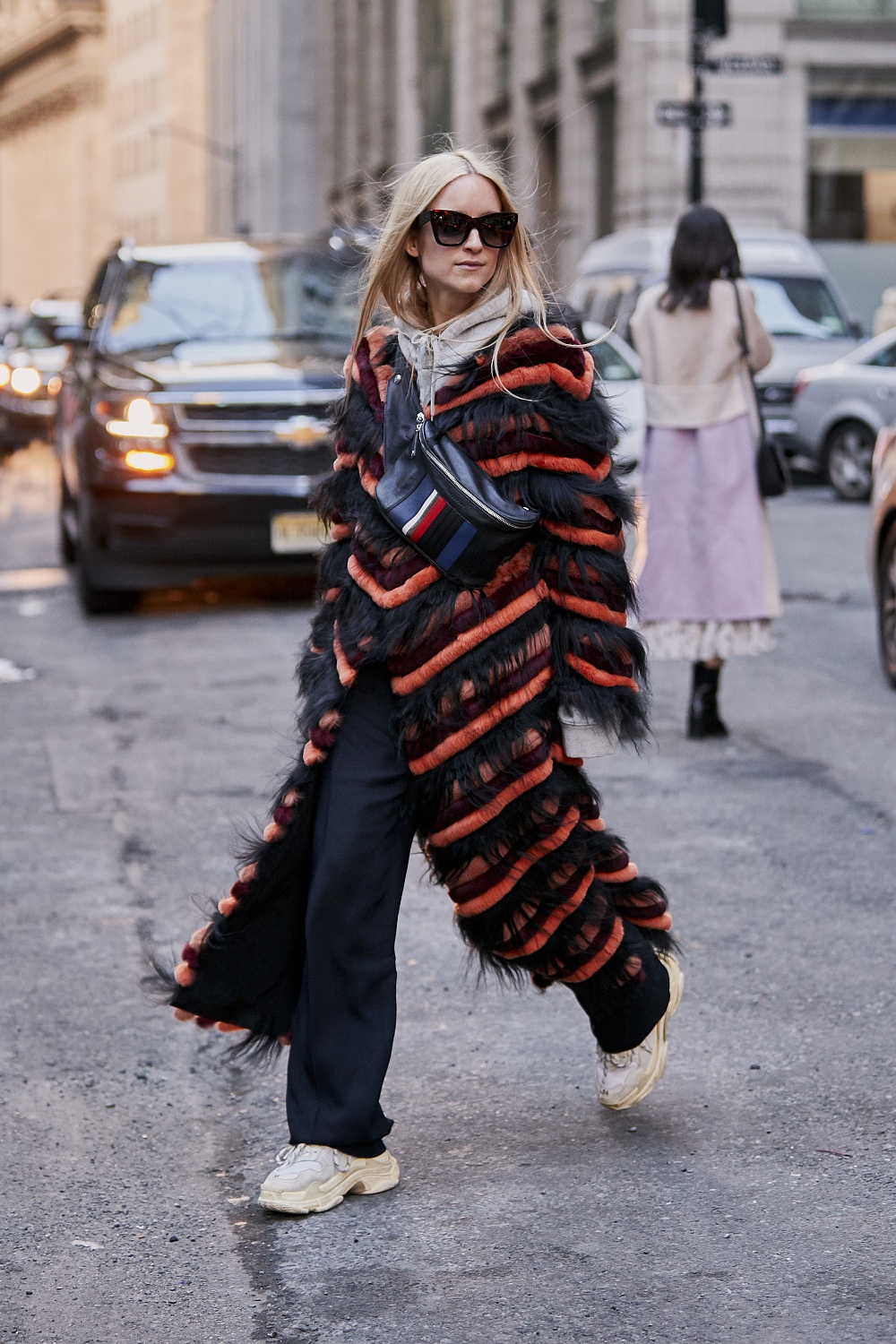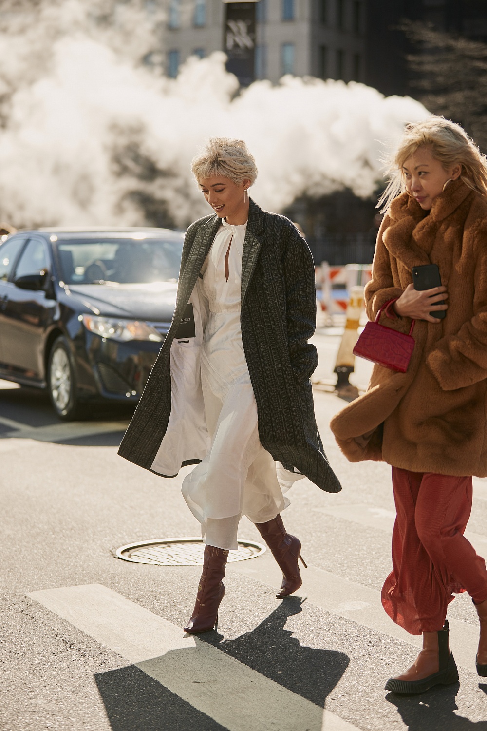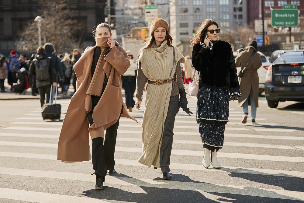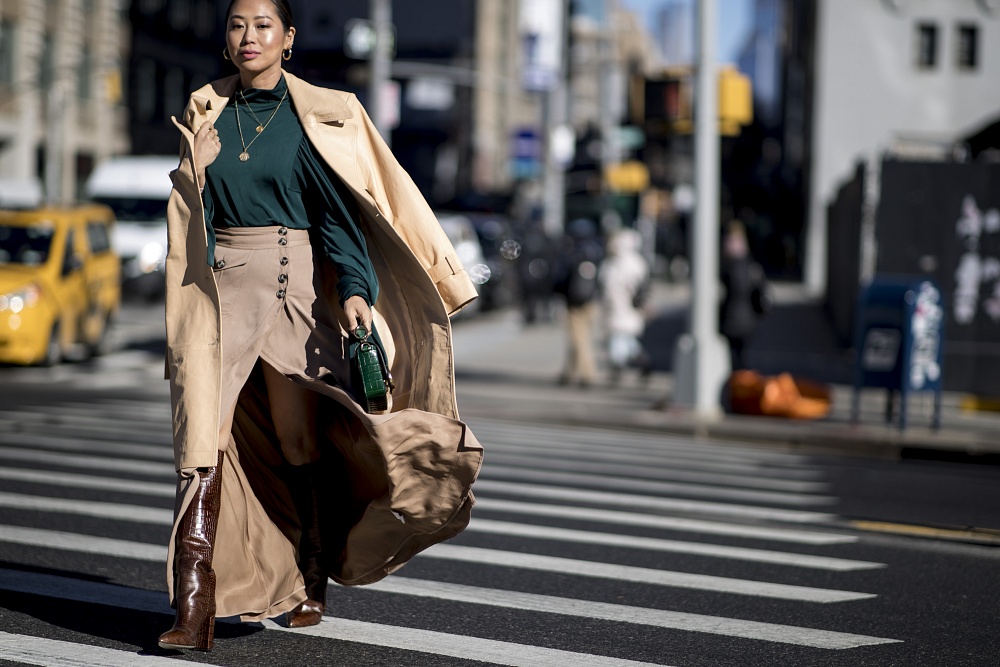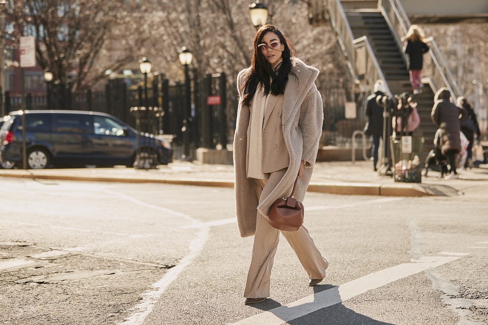 Звезды нью-йоркского street style наглядно демонстрируют, как носить главные тренды сезона: 50 оттенков бежевого, многослойность и маленькие сумки.