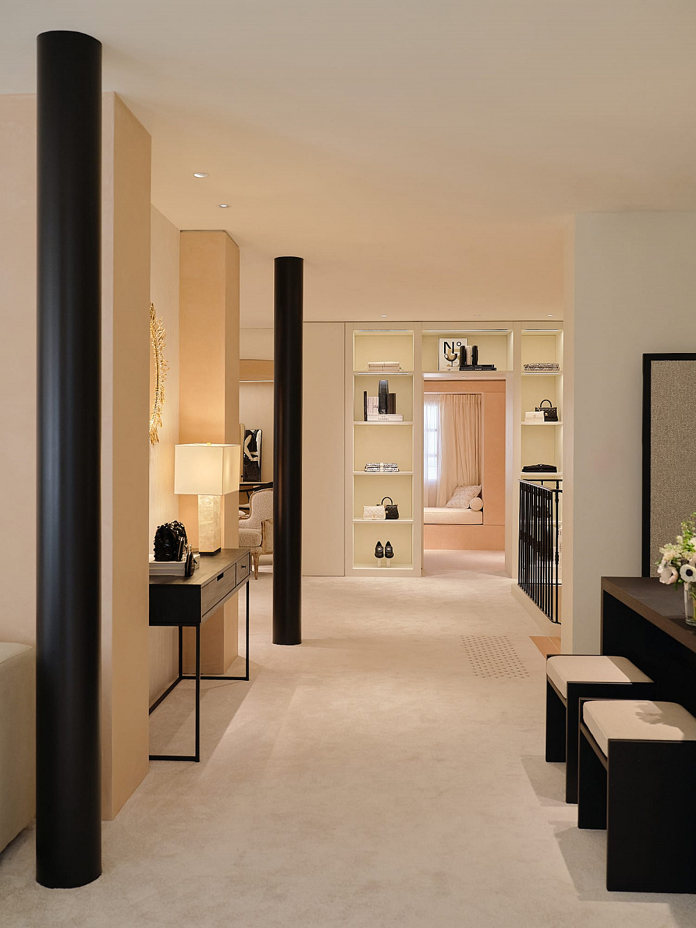 На першому поверсі представлено безліч новинок: сумок і взуття, сонцезахисних окулярів, а також годинників і вишуканих прикрас. Ідеальний гардероб для пляжних днів і тихих вечорів — колекція COCO BEACH пропонує грайливий ремікс американського спортивного та курортного одягу разом з яскравими сучасними купальниками. Звідси скульптурні сходи ведуть відвідувачів нагору до салону ready-to-wear одягу, де доступні найновіші колекції Chanel.