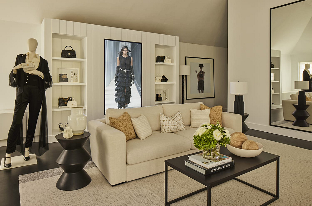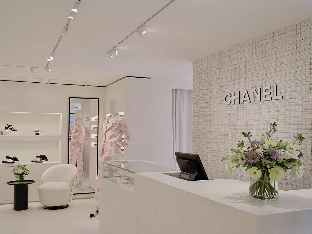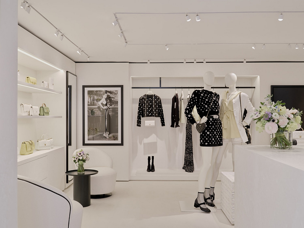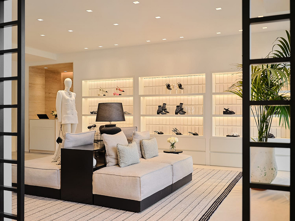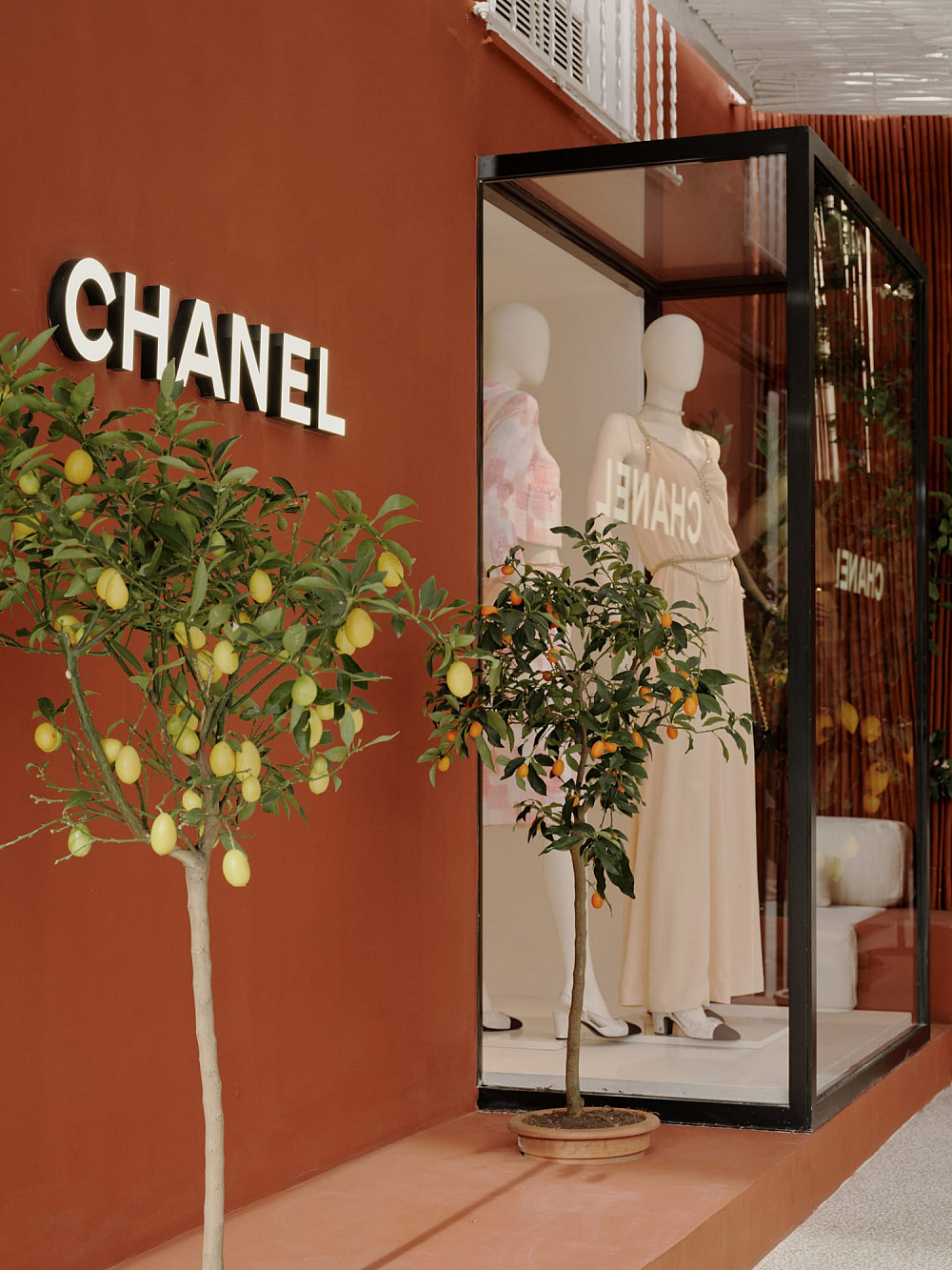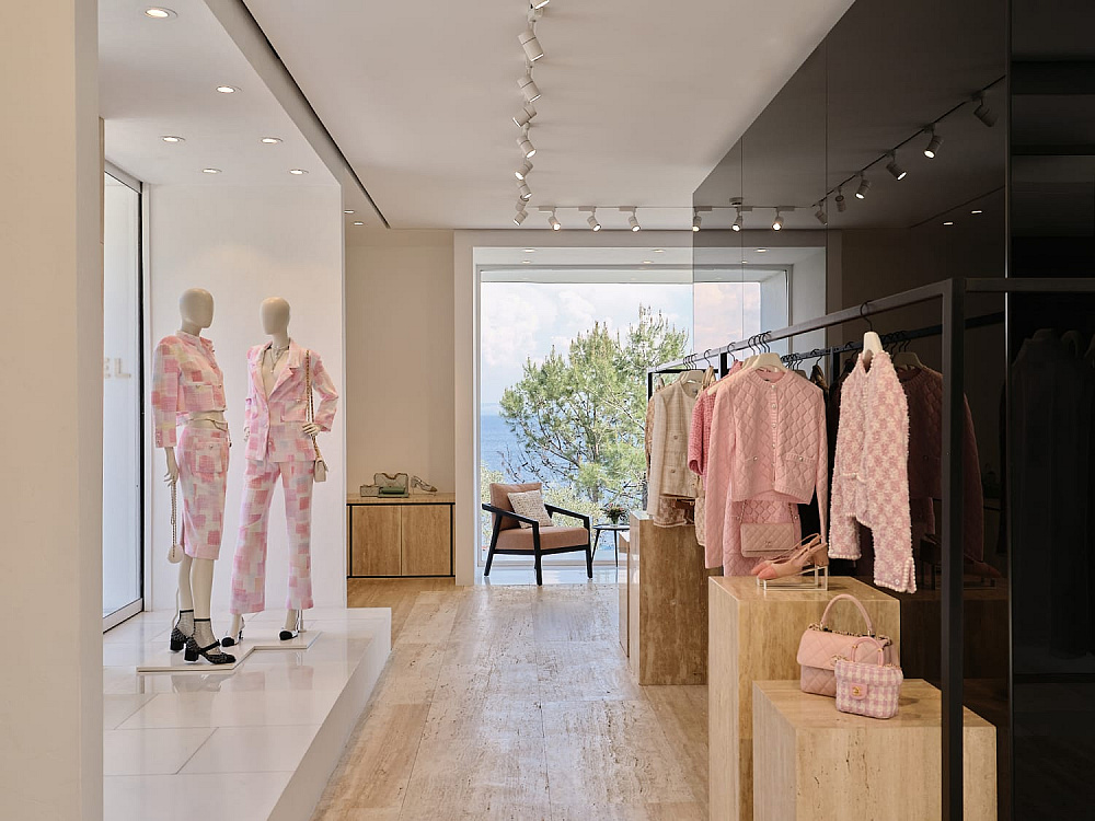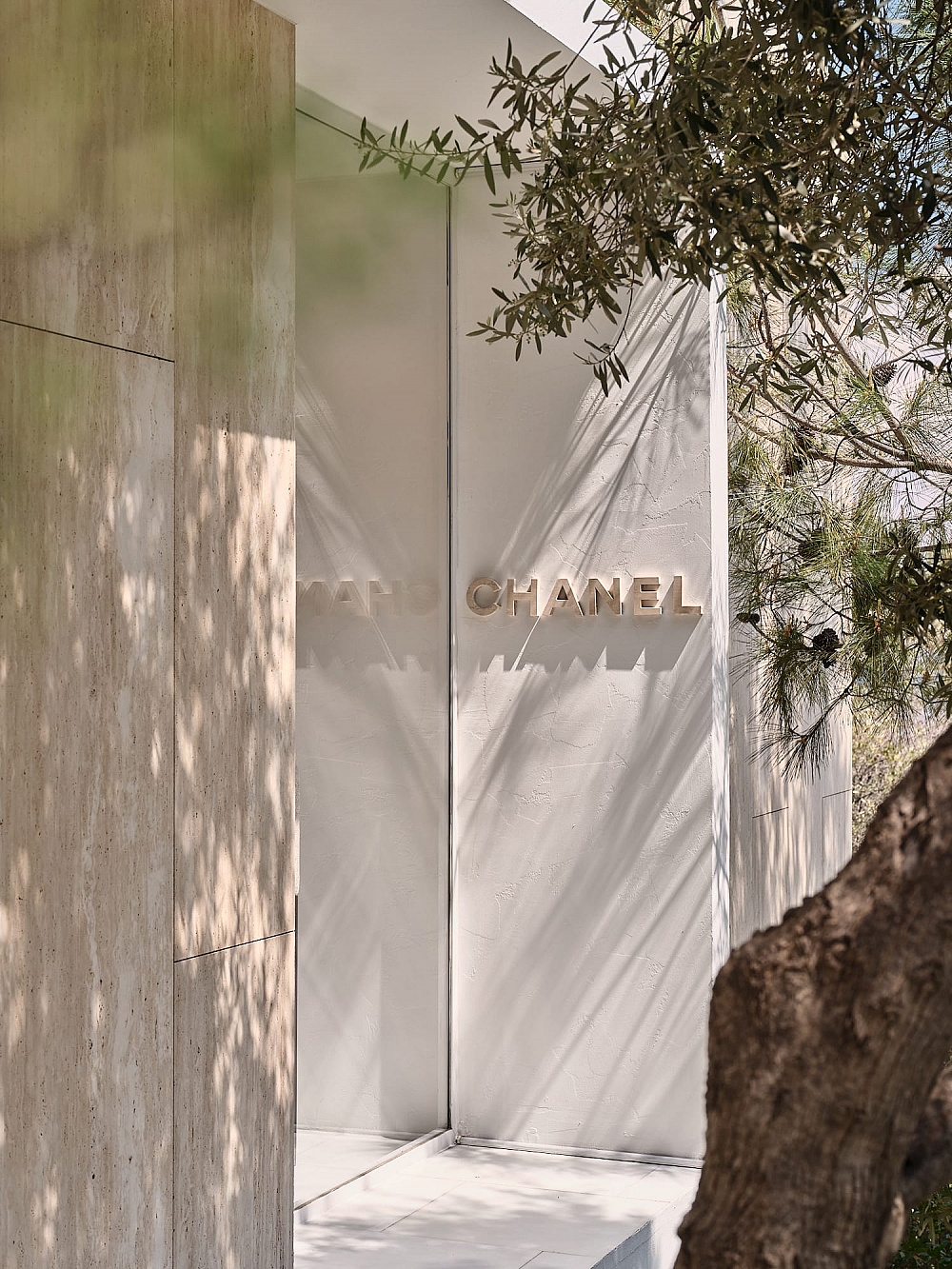 У квітні 2023 року Chanel знову відчинив двері сезонного бутика в центрі чарівного острова Капрі, неподалік від мальовничої вулиці Камерель. Однак цьогоріч його було переосмислено у чистому мінімалістичному стилі, наповненому сяючим білим із контрастними акцентами графічного чорного. Наявна текстурна гра між центральними консолями з мінерального каменю та оздобленими пастельним твідом стінами та подіумами, що привносить тепло та характер у простір.