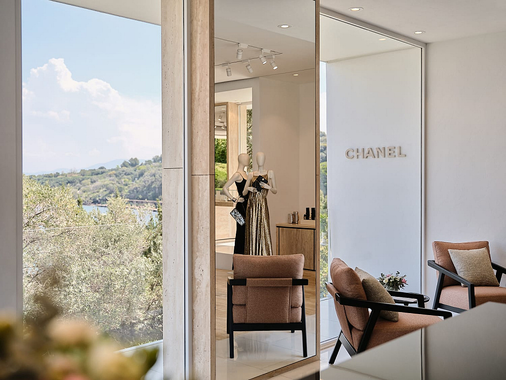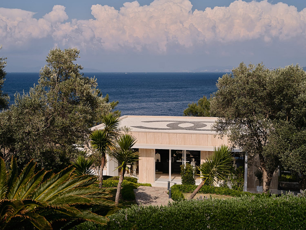 Своїх клієнтів Chanel радо вітає у сезонному бутику на залитому сонцем узбережжі Егейського моря в Бодрумі на курорті Mandarin Oriental. Сучасний дизайн у формі куба з логотипом бренду на даху, складеним із чорного та білого гравію, виділяється на тлі садів готелю та морського простору.