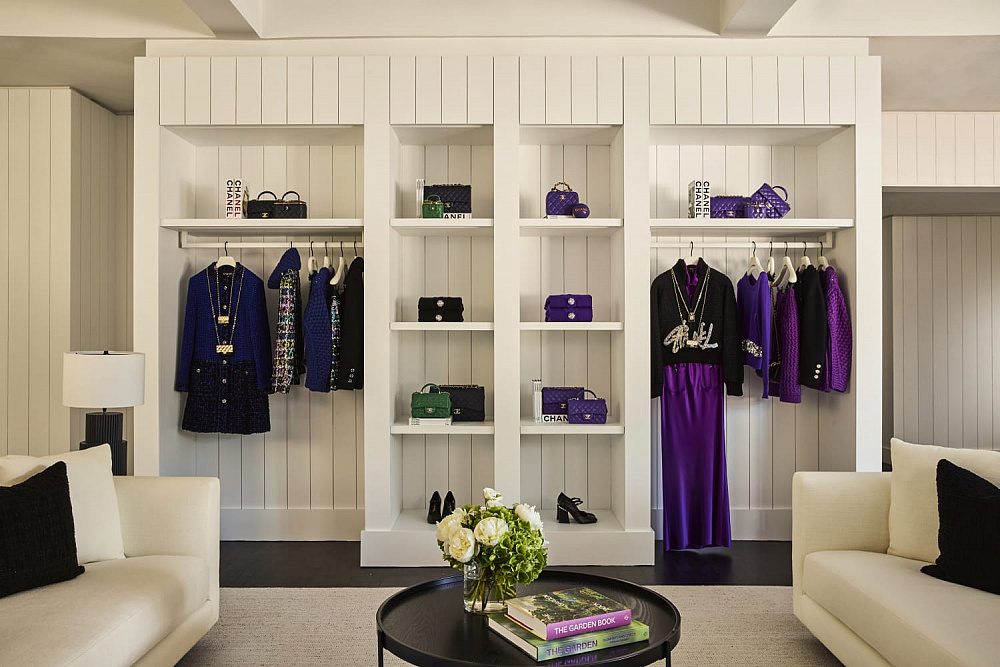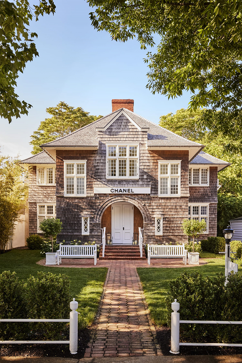 Цьогоріч бутик Chanel у Гемптоні з американської мрії перетворився на паризьку фантазію. Розташований на двох поверхах, він пропонує сумочки, невеликі шкіряні вироби, аксесуари, годинники та ювелірні вироби, а також вбрання з колекцій Coco Beach і Métiers d’art 2021-22.