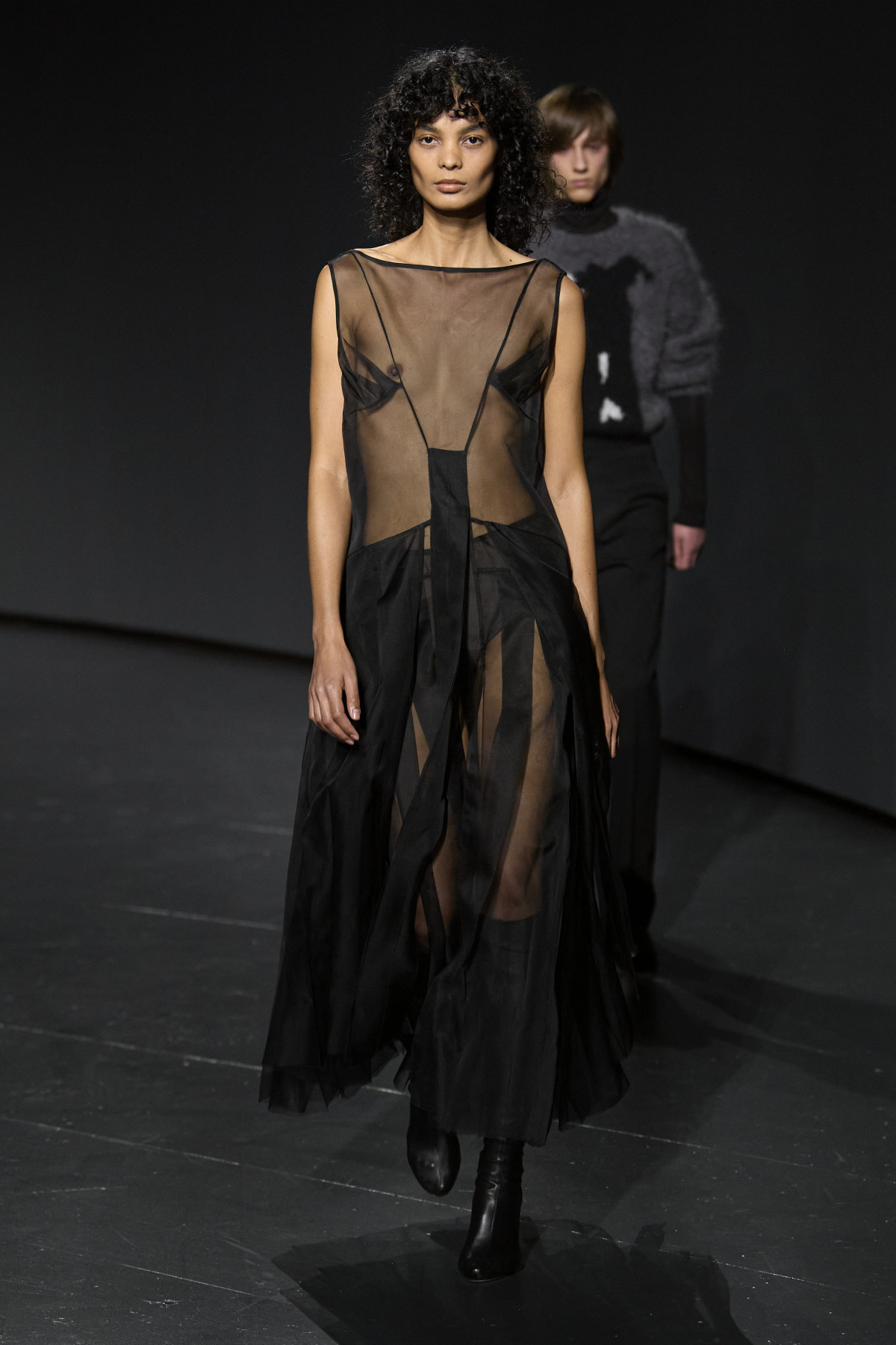 Запросивши гостей шоу до лондонського спортзалу Seymour Leisure Centre, модельєр продемонстрував трикотажні сукні, твідові жилетки й сарафани та гіпероб’ємні пальта. З особливих деталей можна відзначити вузлуваті фактури, прозорі тканини, сиві перуки та домашні капці на моделях.