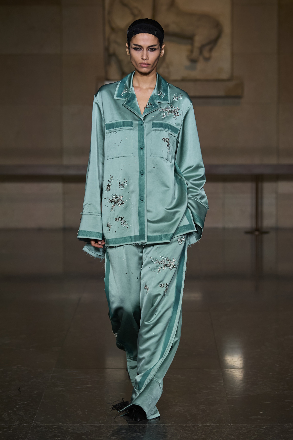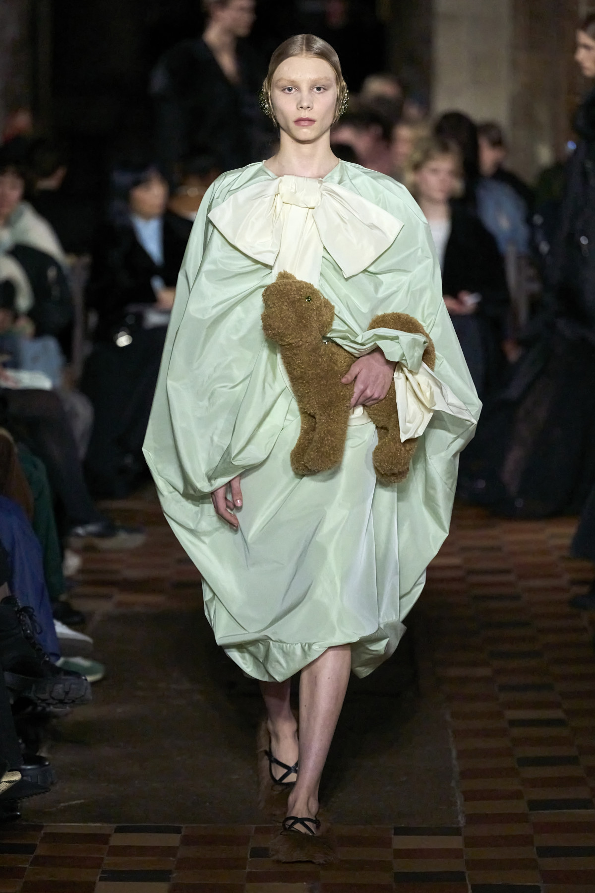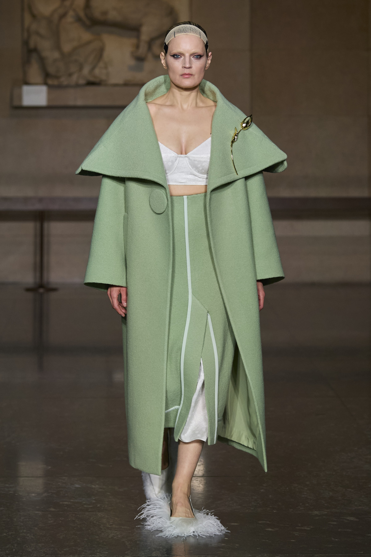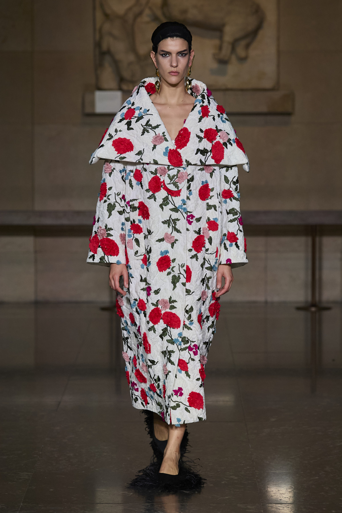 Ердем Мораліоглу провів глибоке дослідження життя, кар’єри та стилю видатної оперної співачки XX століття Марії Каллас, що й відобразив у своїй новій осінньо-зимовій колекції. Гардероб зірки та окремі періоди з її історії стали справжнім натхненням для дизайнера. Ми роздивилися велике розмаїття силуетів, форм, кольорів, принтів і текстур: на подіумі домінували сукні з квітковими візерунками, пальта з хутром і пір’ям і шовкові костюми.