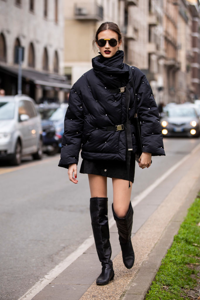 У многих сформировалось стереотипное убеждение, что пуховик — спортивная и повседневная верхняя одежда, с которой можно носить джинсы и максимум — брючный костюм. На самом деле сочетание пуховик + платье может быть очень даже женственным. Дизайнеры и модные эксперты часто настаивают на том, чтобы мы экспериментировали с несколькими стилями в одном образе. Проанализировав главные strеet style хроники, показываем, как модно носить платье с пуховиком зимой 2021.