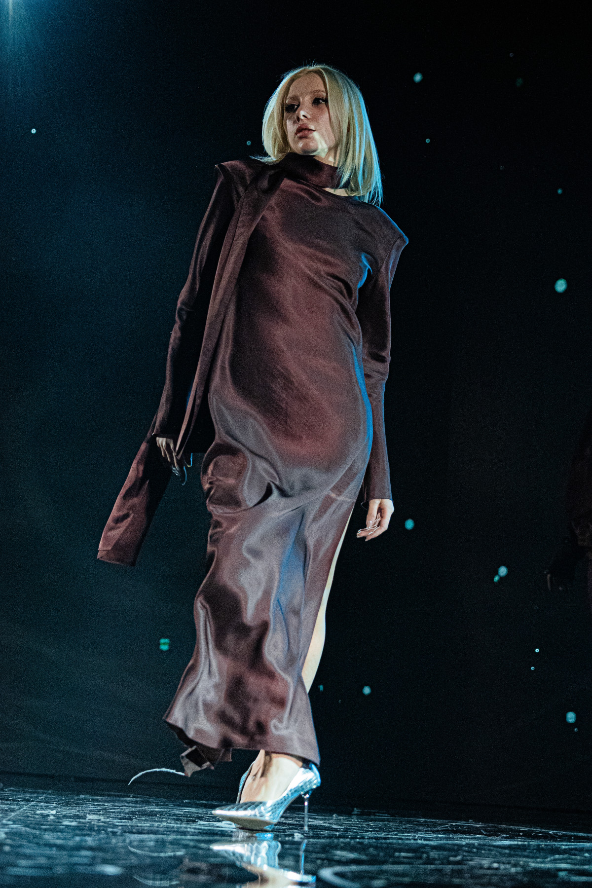 До колекції увійшли елегантні сукні максі, грайливі міні, текстурні піджаки та шовкові костюми. Особливу увагу привернув також акцентний корсет у формі жіночої талії. Колірна палітра — від класичних чорного та бежевого до глибоких відтінків хакі та бургунді — підкреслила багатогранність жіночої натури.