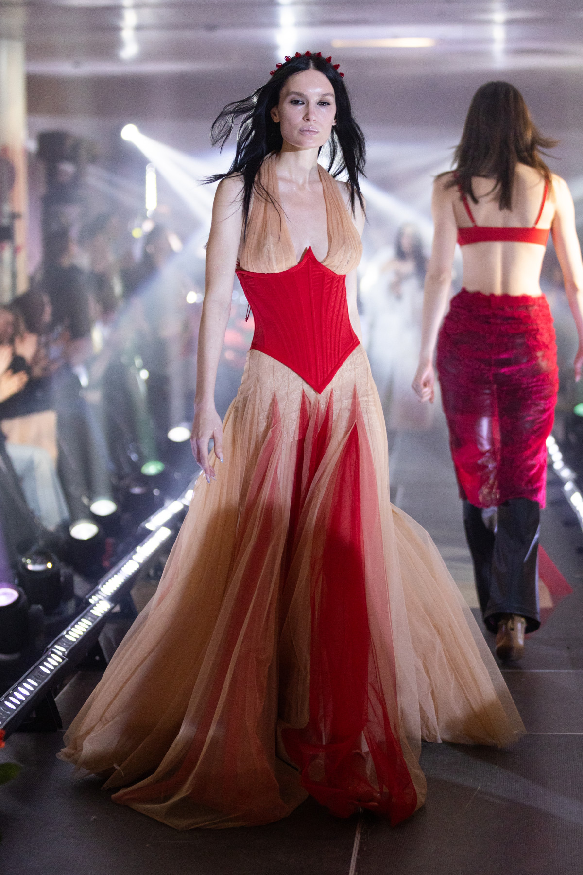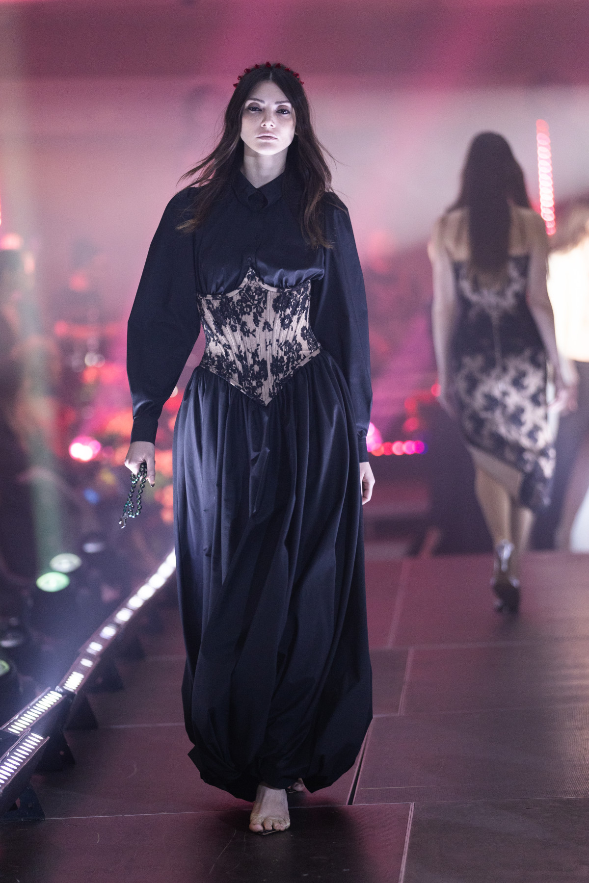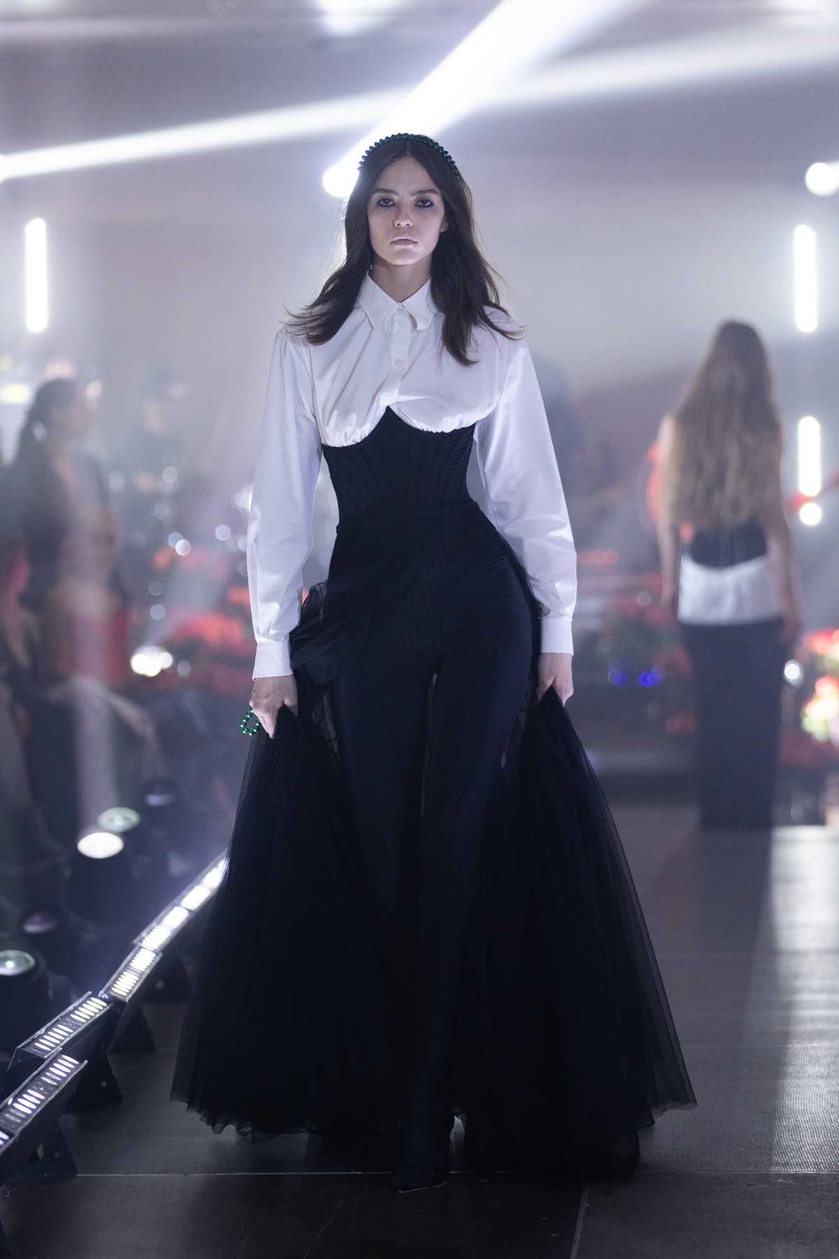 Першим, хто продемонстрував свою нову колекцію у рамках події, став FROLOV. У вересні минулого року бренд разом із театральним режисером Іваном Уривським влаштував грандіозний перформанс, натхнений казкою «Івасик-Телесик». Культовий київський техноклуб К41, заборона фото- та відеозйомки, чотири поверхи, названі на честь персонажів історії, та справжня магія на подіумі — показ став абсолютно унікальним, поставивши перед іншими брендами високу планку. Тож, зважаючи на попереднє шоу, нам було неабияк цікаво, чим же вражатиме Іван Фролов цього сезону.