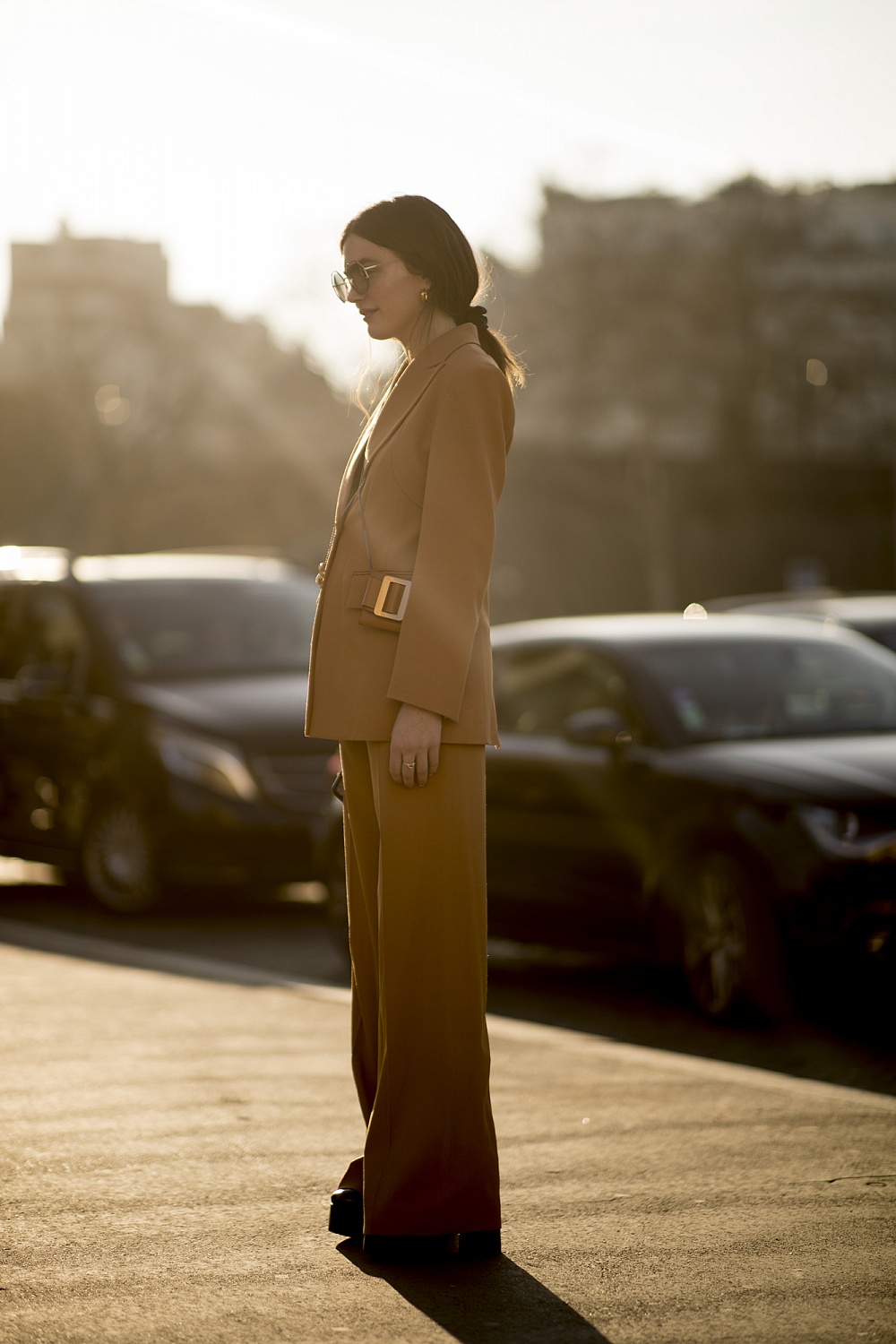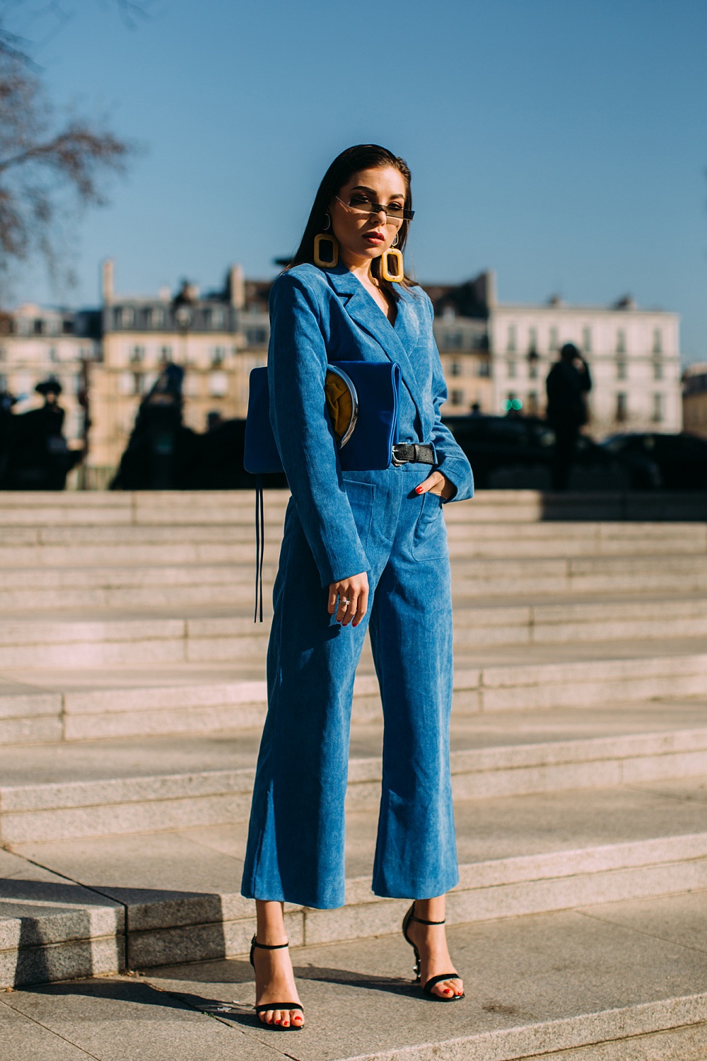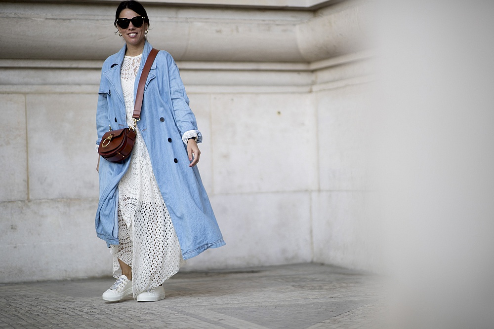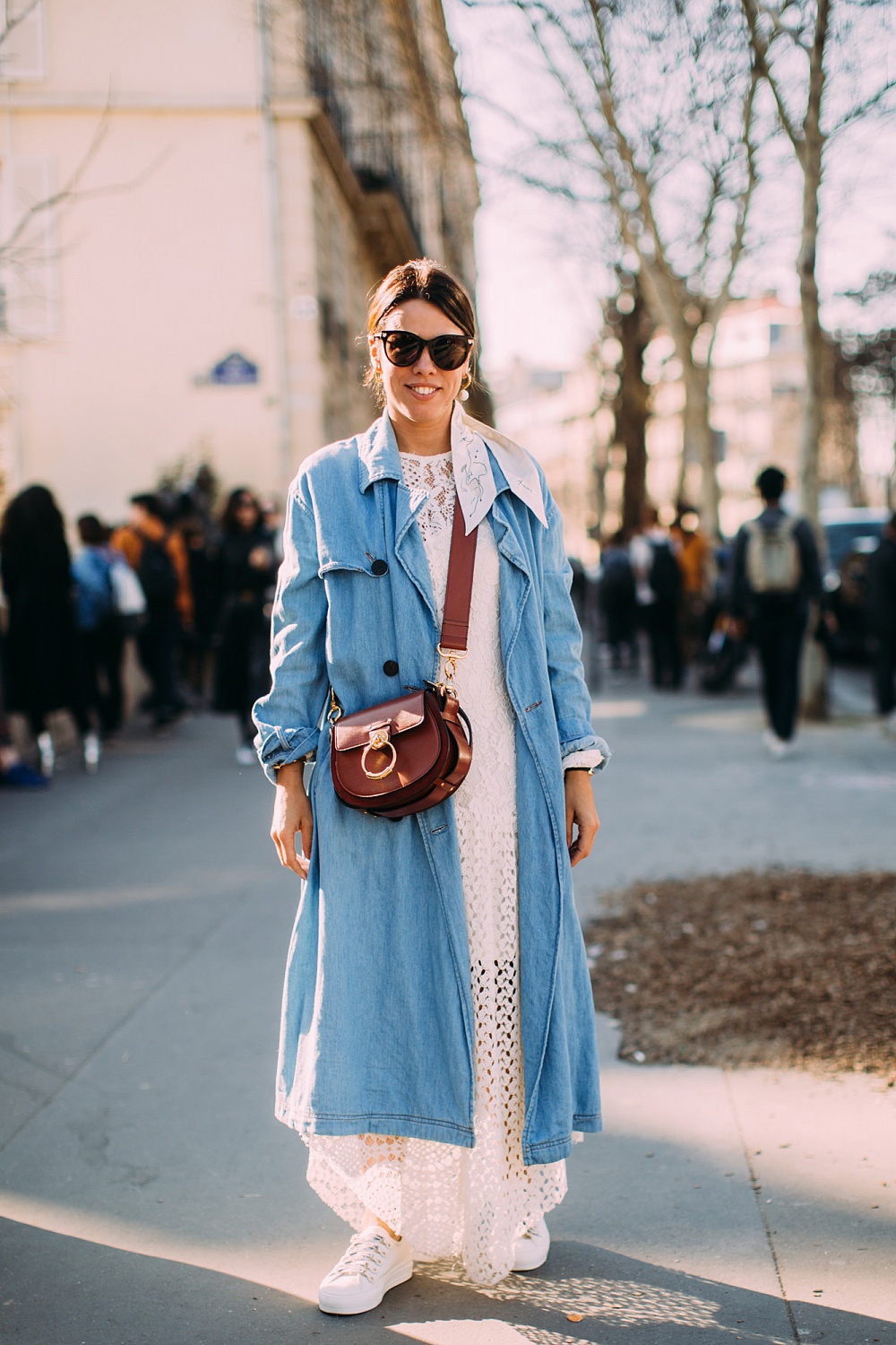 Брючные костюмы всех цветов и фасонов, комбинезоны и платья из денима, летящие юбки и сумки Chloé – готовимся встречать весну и вдохновляемся образами героинь парижского street style.