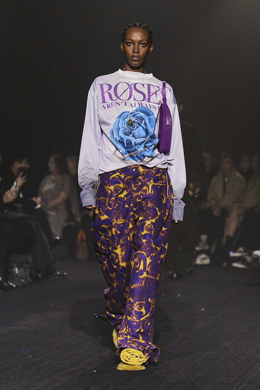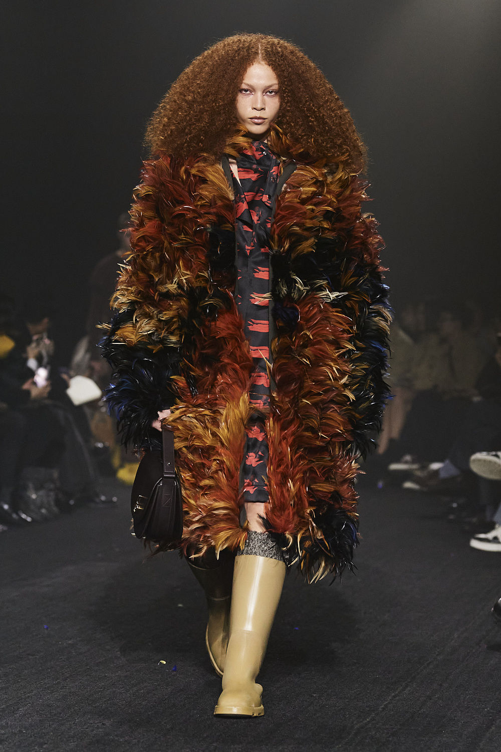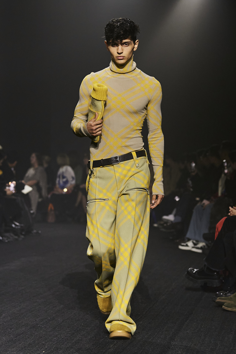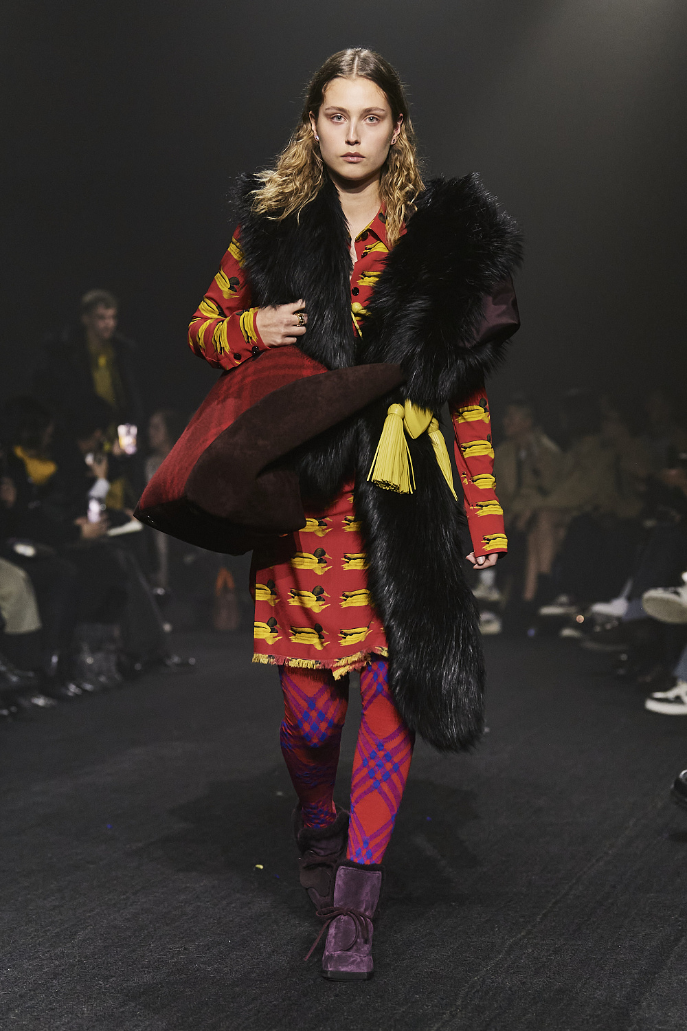 Але головне в колекції — колір. Зокрема у центрі уваги були синій, жовтий та червоний відтінки. Вони прикрашали пальта у клітинку, светри, гольфи, шарфи, спідниці та штани.
