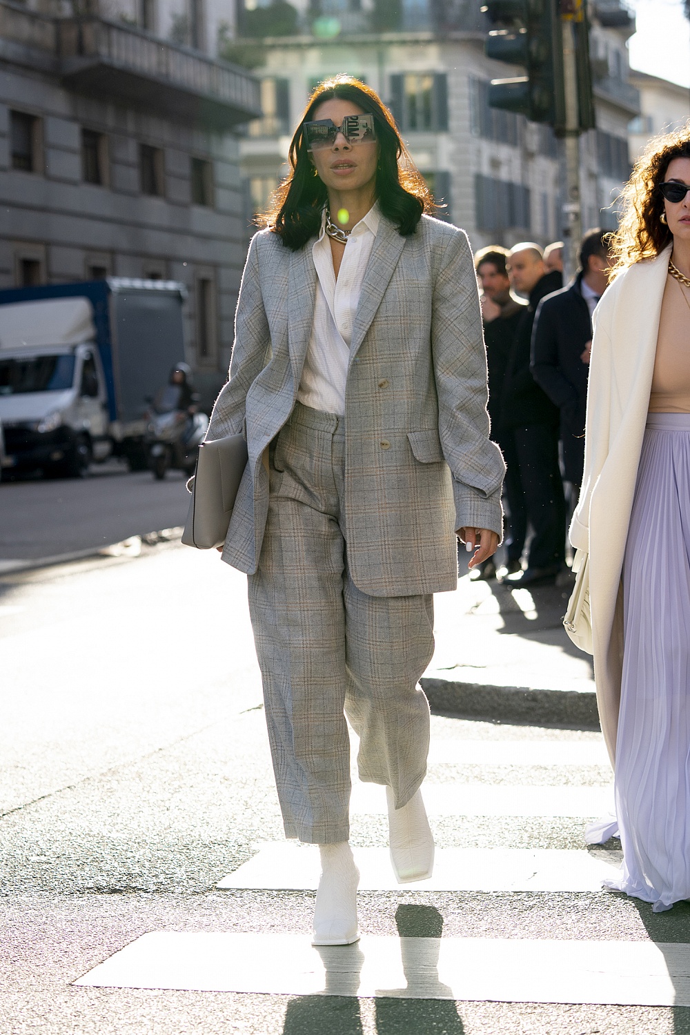 Рассматривать эффектные наряды гостей Миланской недели моды столь же увлекательно, что и новые коллекции ведущих брендов. Брючные костюмы самых разныз фасонов, шелковые юбки, объемные свитеры, кожа, клетка и лавандовый цвет — героини street style показывают, как адаптировать главные тренды сезона к реальной жизни.