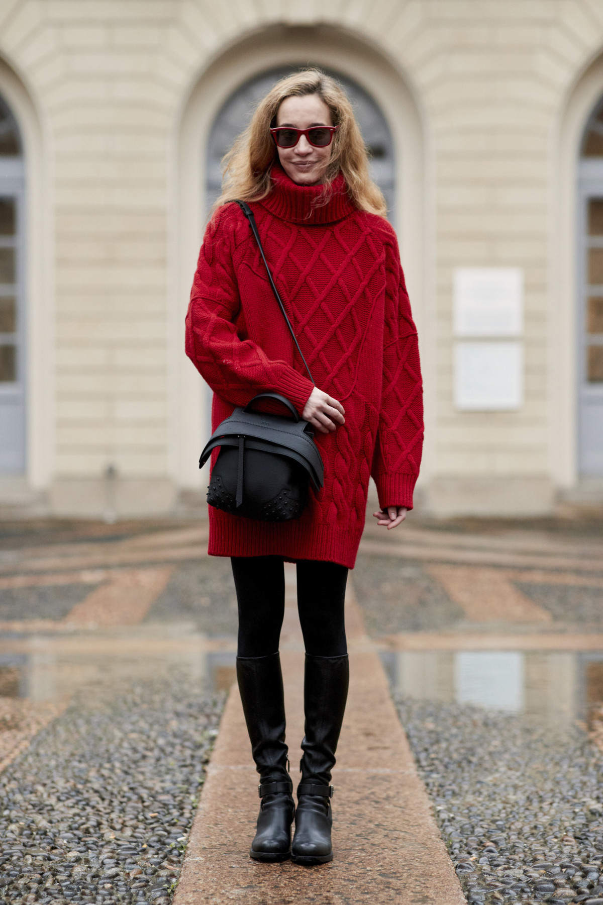 Кашемир, знаковые аксессуары и много красного в объективе миланских streetstyle-фотографов