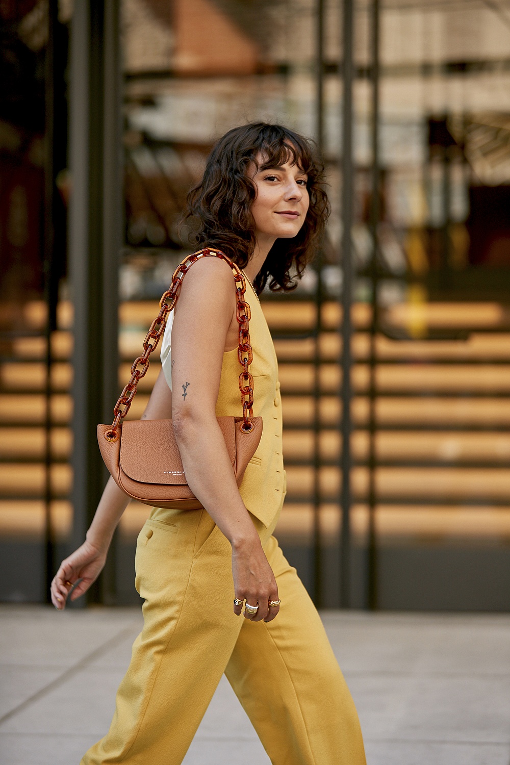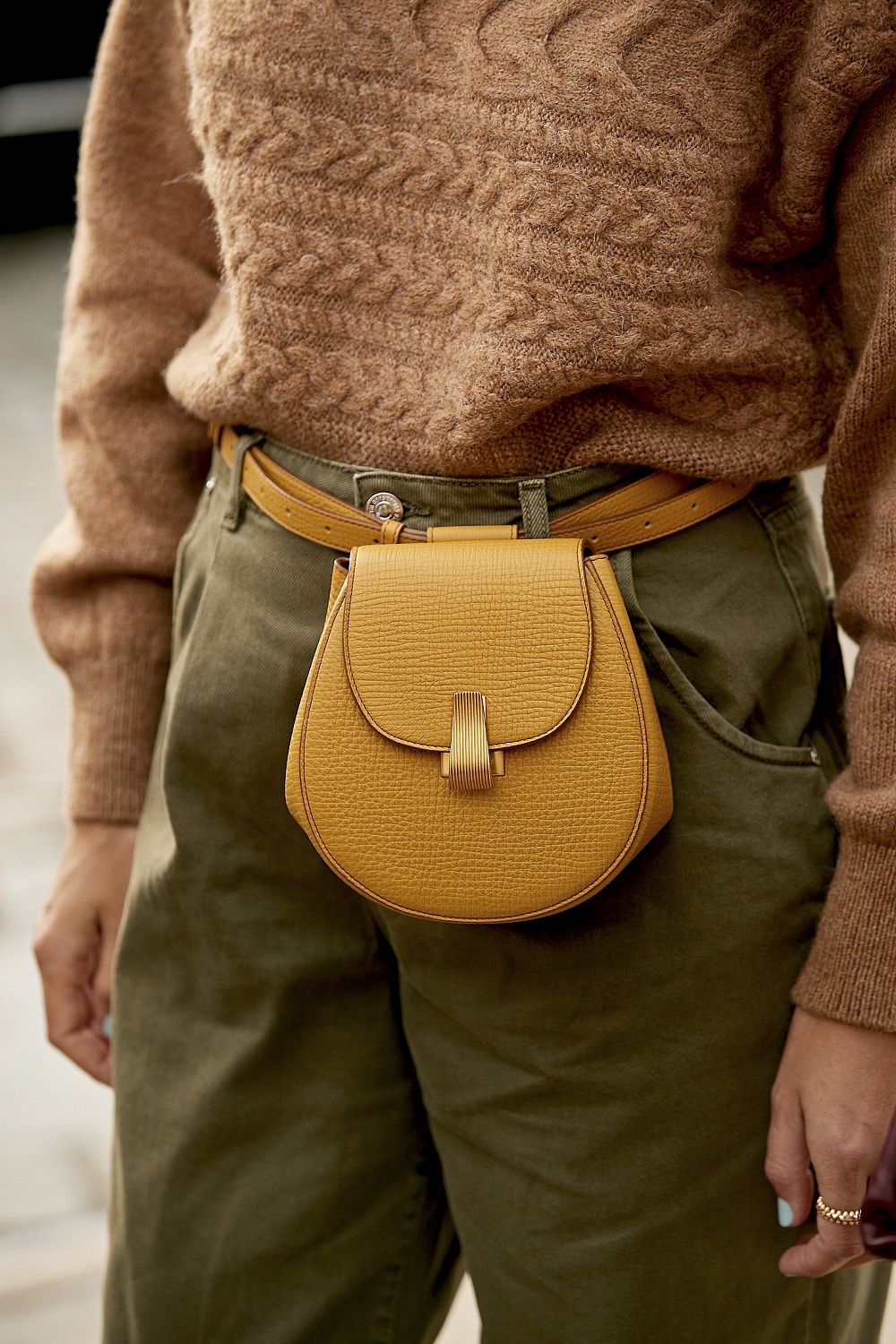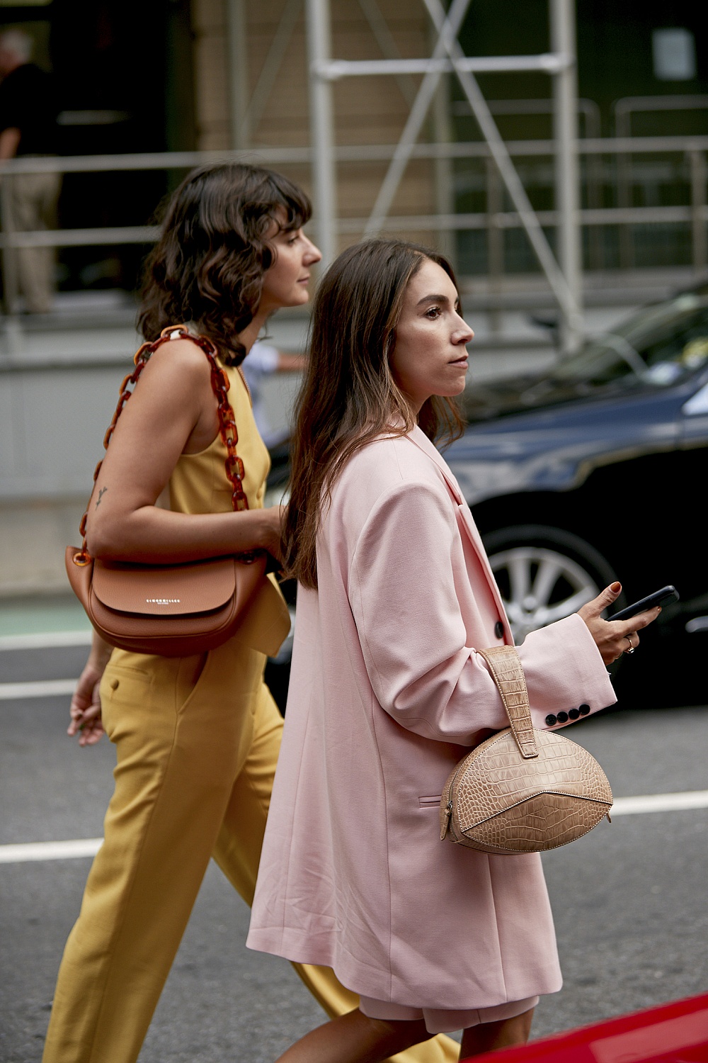 Брючные костюмы конфетных цветов, кожаные платья и сумки Bottega Veneta
