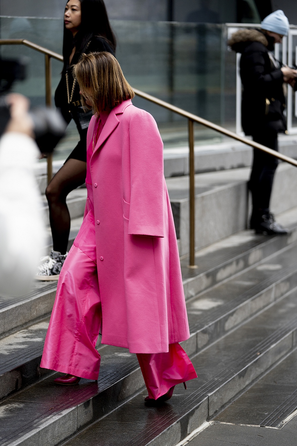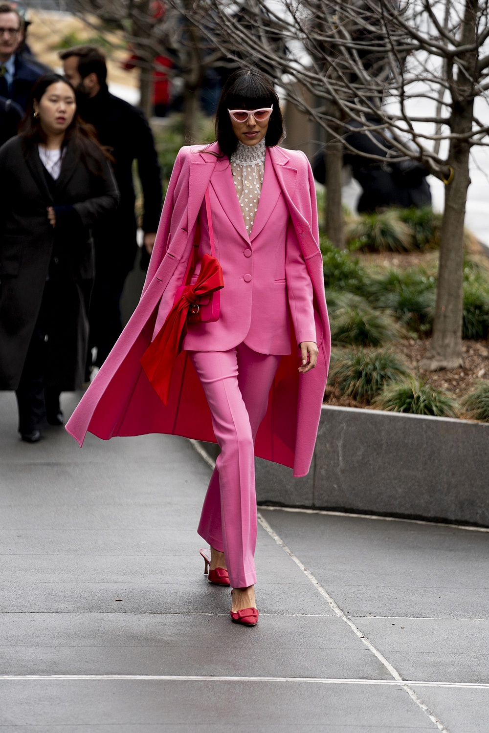 Брючные костюмы, розовый цвет и шубы из искусственного меха — героини нью-йоркского street style показывают, как адаптировать главные тренды сезона к реальной жизни.