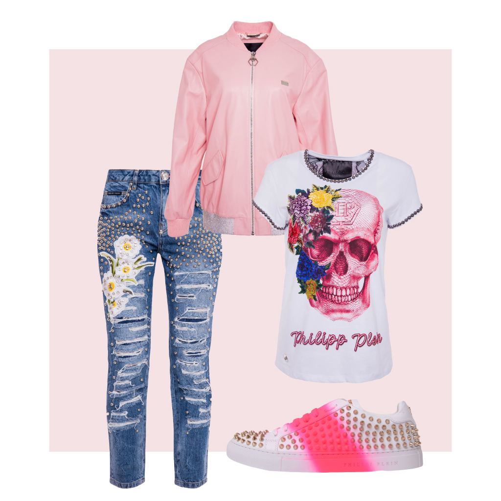 Ну а для тех же, кто все-таки готов развить тему инфантильности на 100%, Philipp Plein создали в этом сезоне не просто розовые футболки, а топы, украшенные изображением мультяшного олененка Бэмби и настоящие кроссовки принцессы – что-то более мимимишное и придумать сложно.