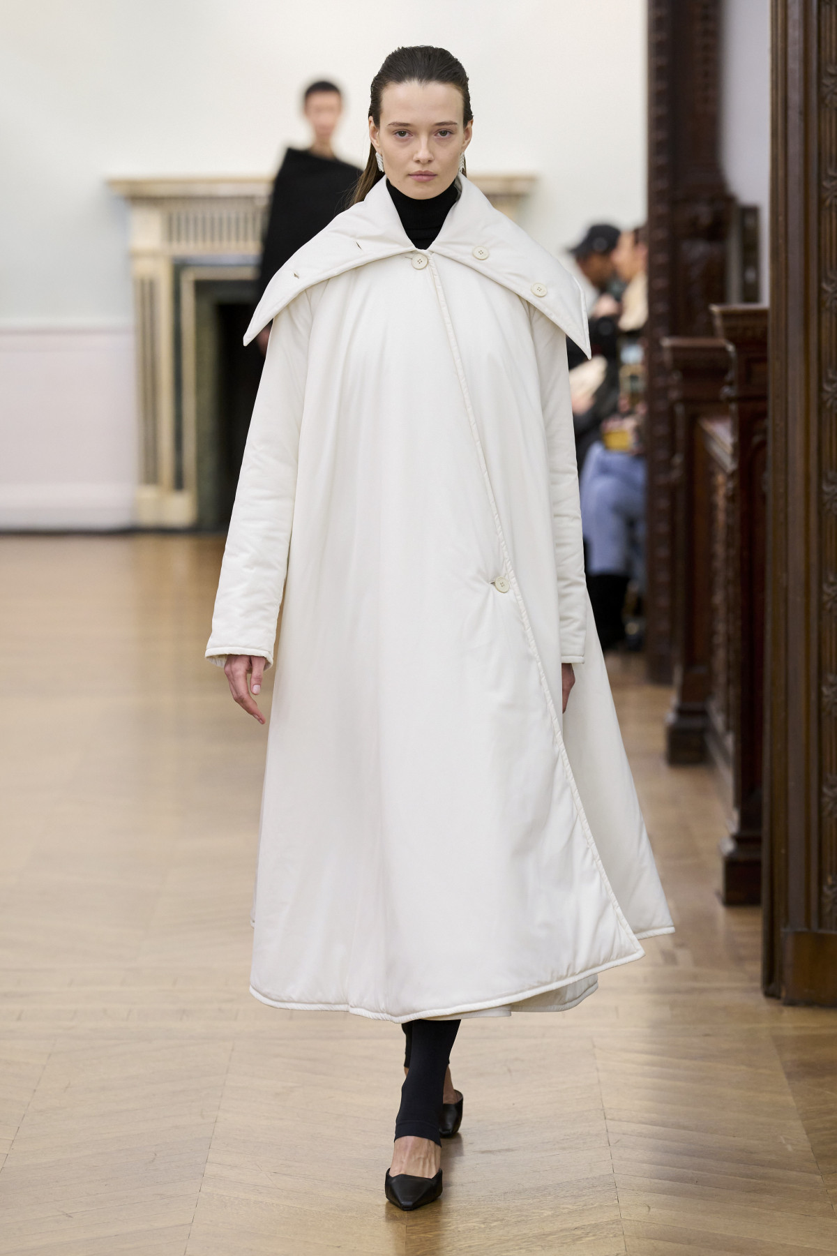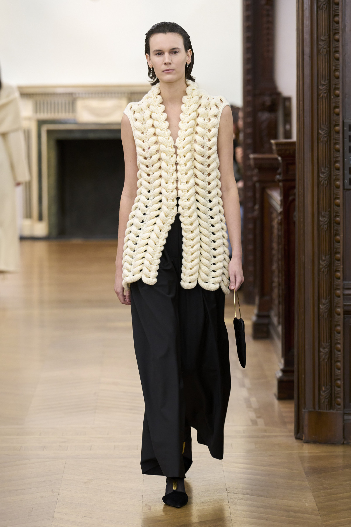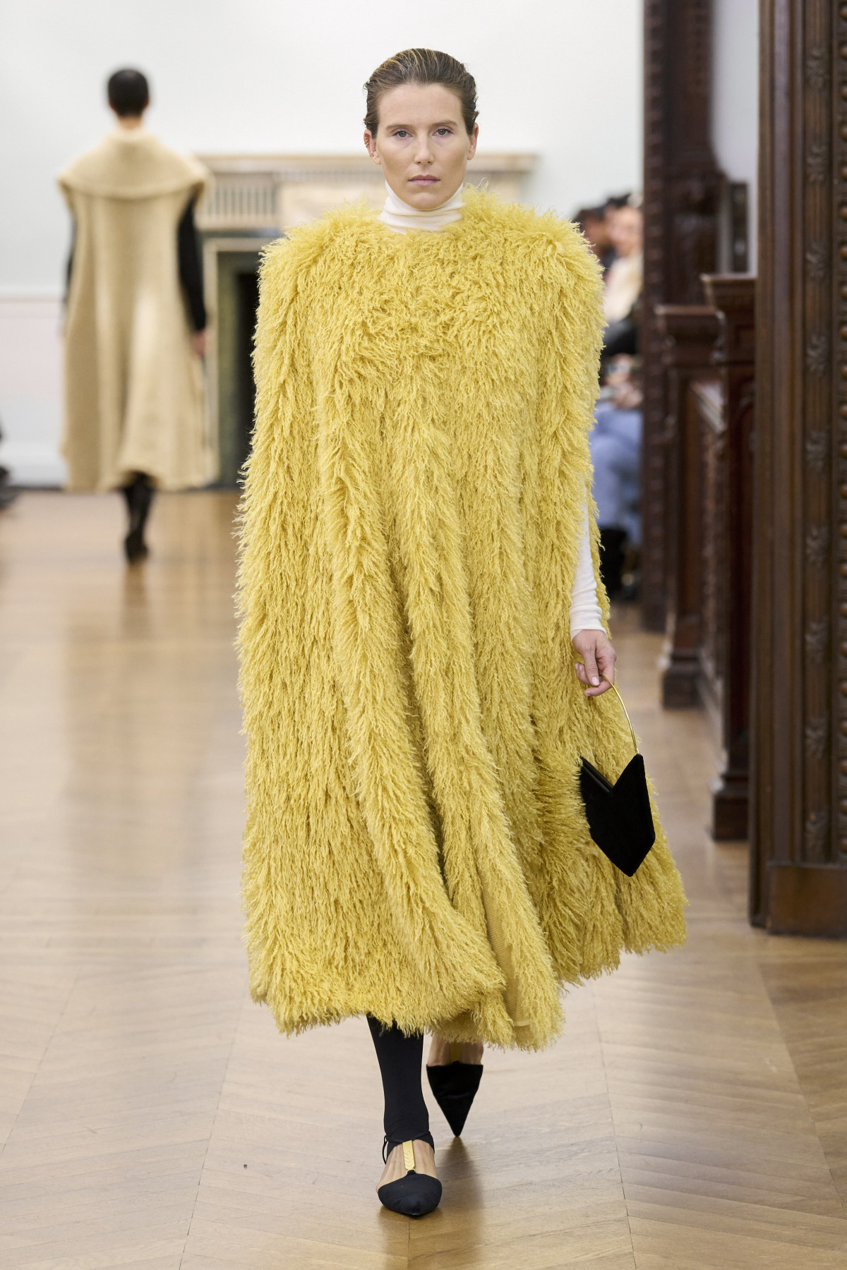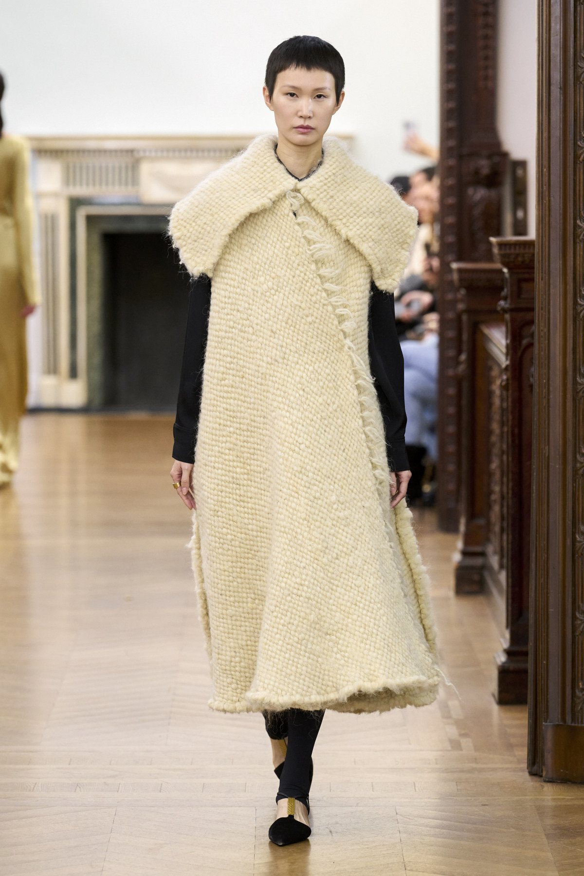 Також національні мотиви проглядаємо і в пальтах А-подібної форми, що, за словами Світлани Бевзи, відсилають до традиційних в Україні XIX століття кожухів. Вони були представлені варіантами з рукавами та без. Ще однією цікавою деталлю стали в’язані жилети, які своїм плетінням імітували структуру хліба. І яскравим завершенням показу стало текстурне пончо з хутра, що немовби нагадувало пшеницю.