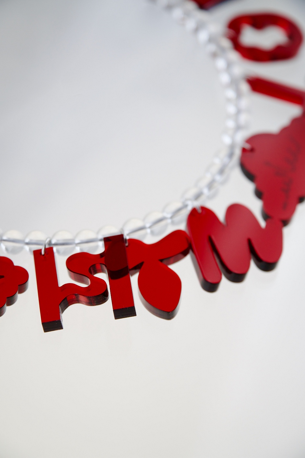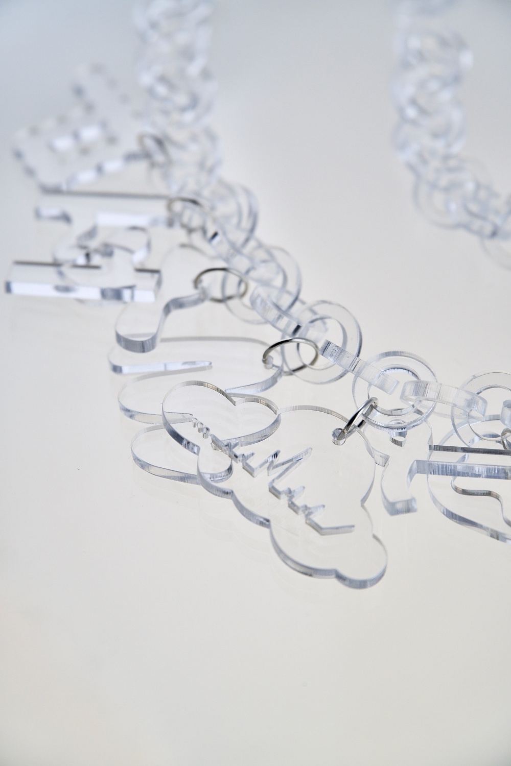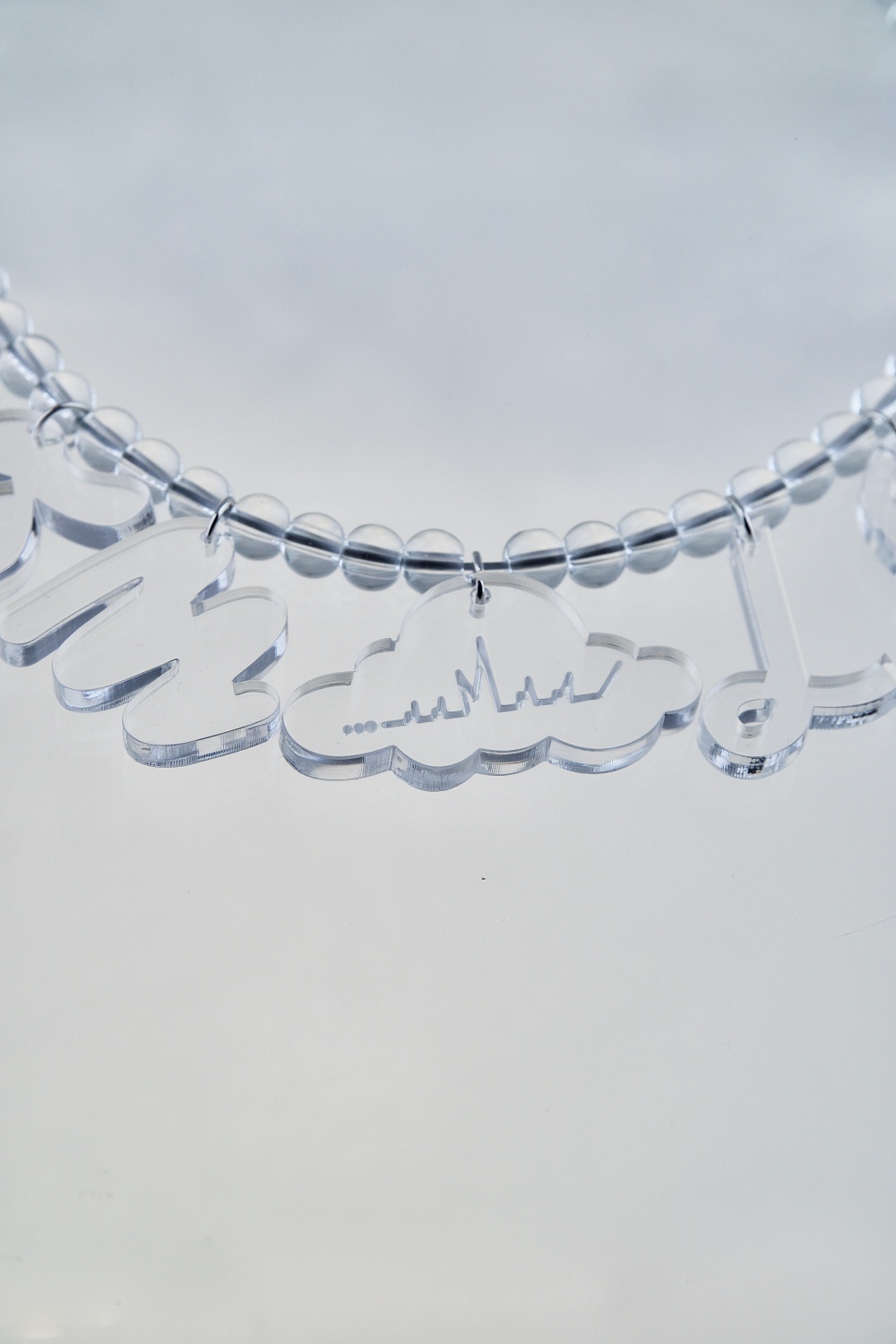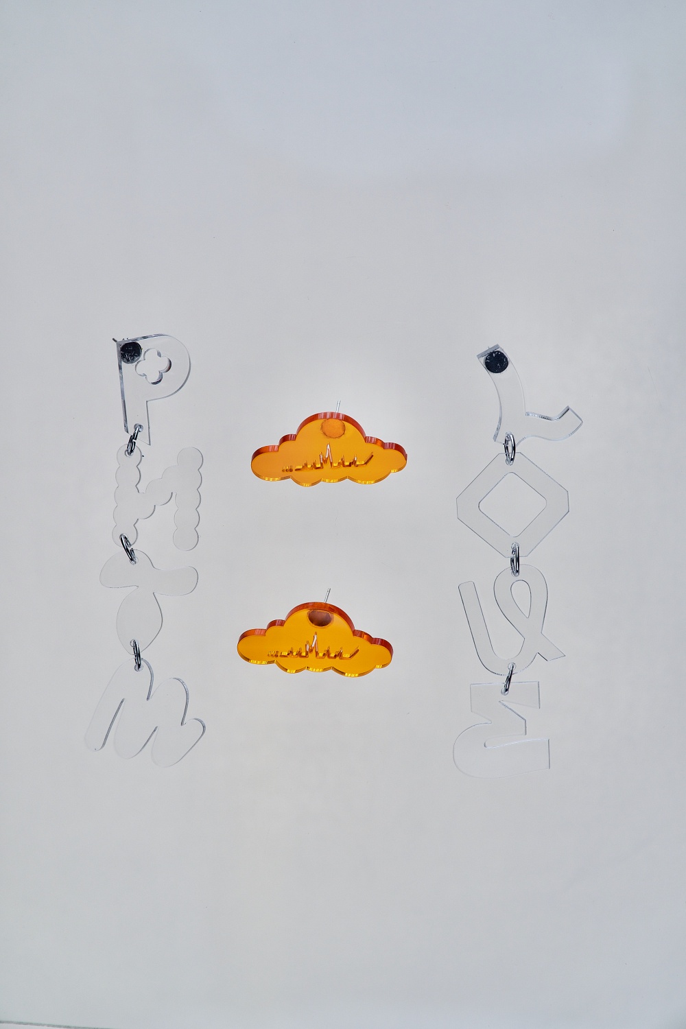 Основной материал — цветной прозрачный акрил актуальных оттенков, который был куплен в Германии. Каждое украшение — бусы, кольца, серьги, а также подвеска и брелок на кроссовки — сопровождается подарочной коробочкой с принтом с эффектом 3D.