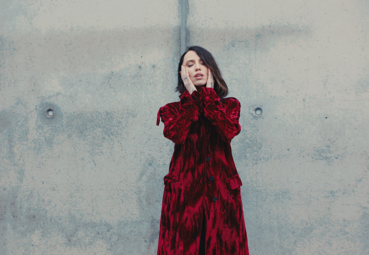 Особливий акцент — червоне оксамитове пальто, ідеально приталене й глибокого багряного відтінку. Це архівний Heider Ackerman з колекції 2015 року.