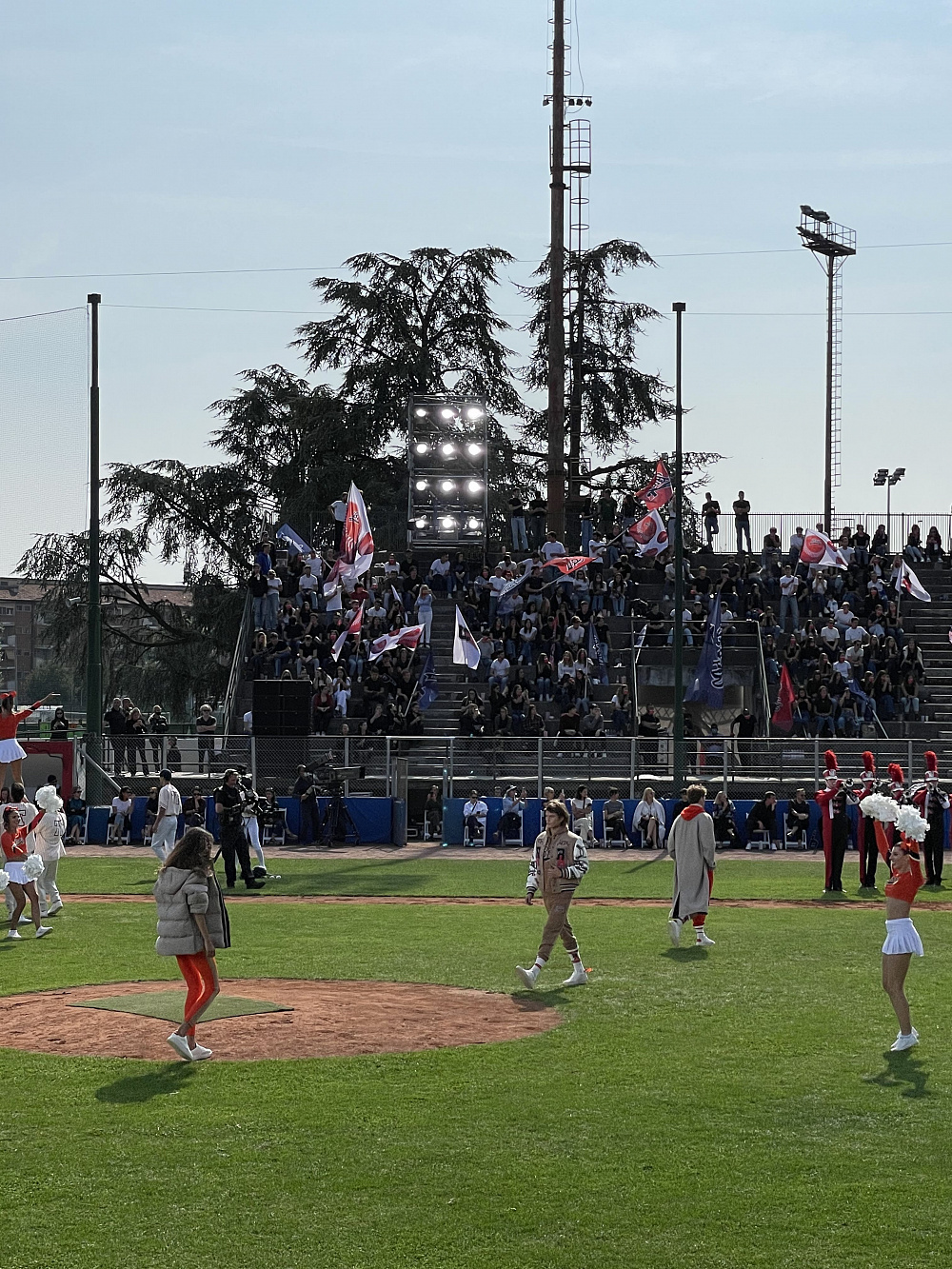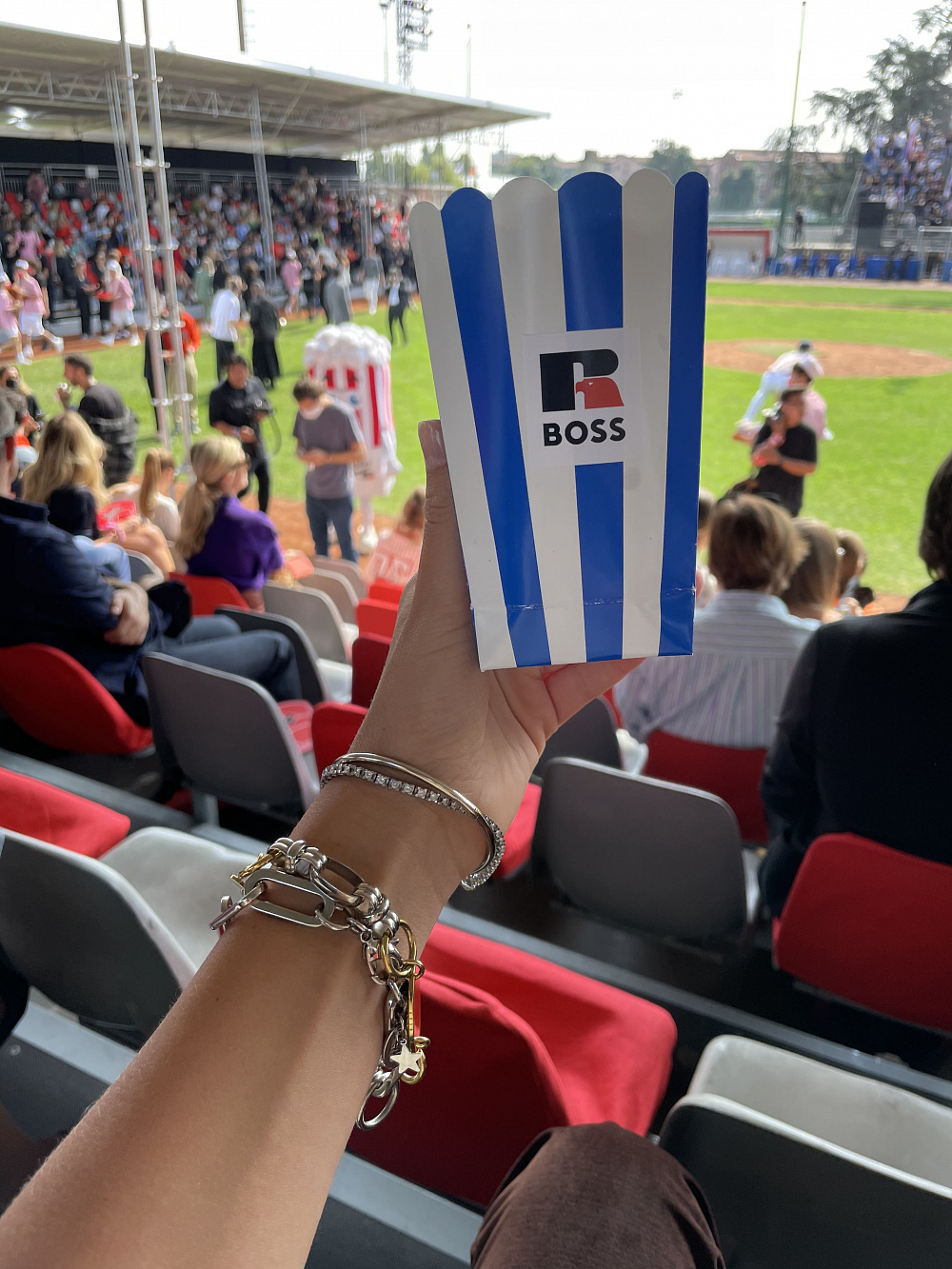 Показ BOSS x Russell Athletic, бейсбольное поле и ресторан у ипподрома