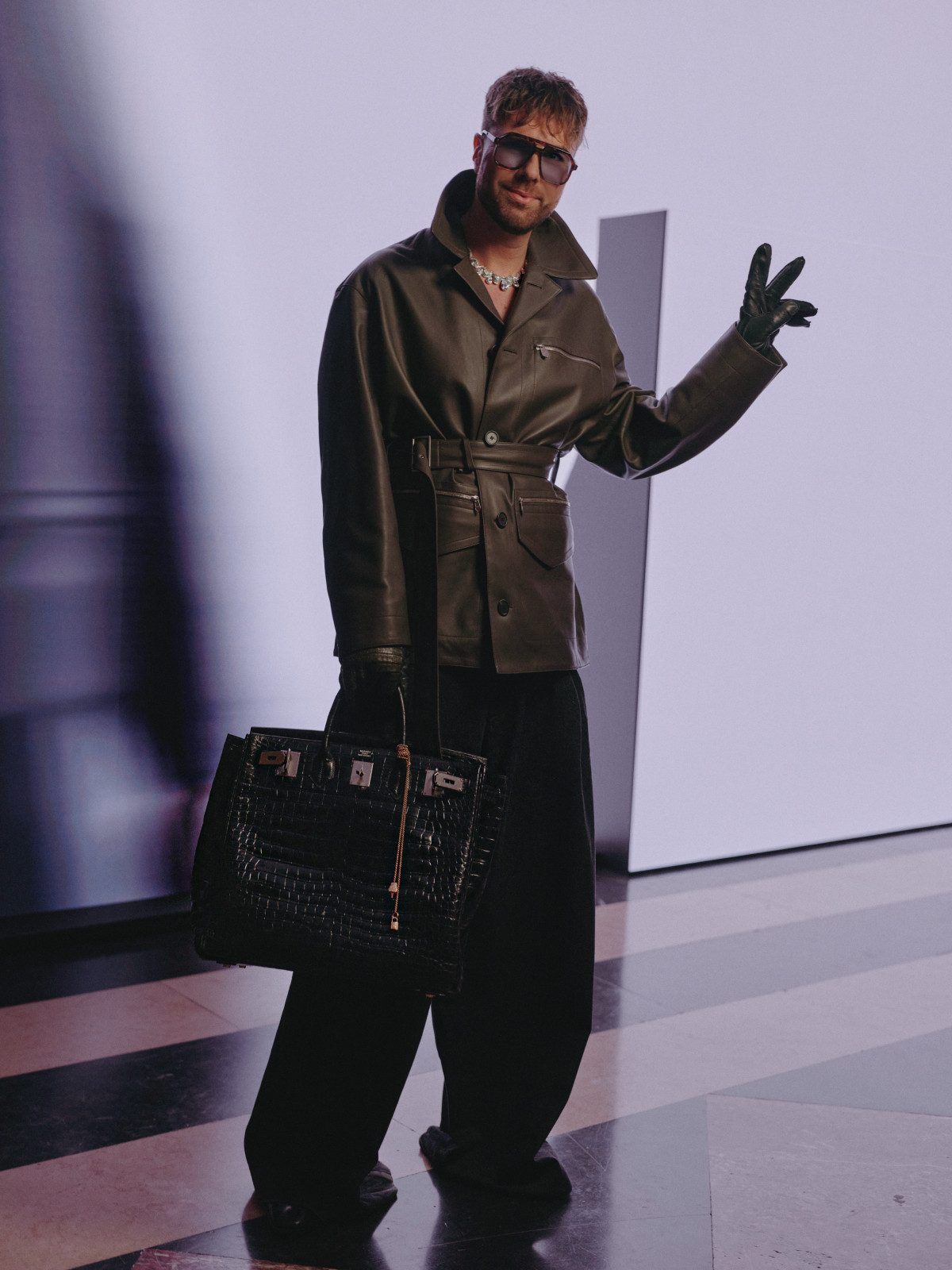 André Borchers cut a precise, cinematic figure at the Hermès FW 26 fashion show channeling a potent mix of heritage luxury and razor‑sharp modernity. The look was about the spectacle of his jewels but even more about the quiet, deliberate power of rare materials he wore with ease.