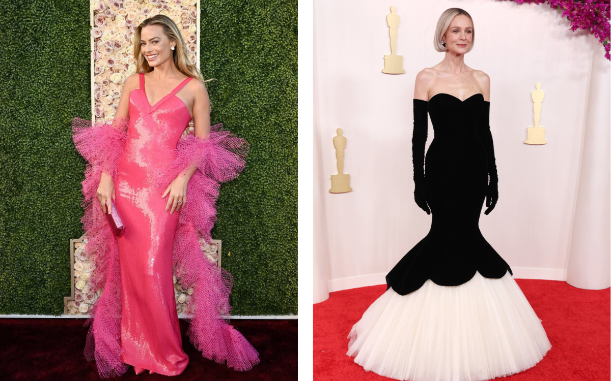 До прикладу, згадаймо вбрання зірки для церемонії «Золотий глобус — 2024». Тоді Ендрю вдягнув акторку в кастомну рожеву сукню Armani Privé, що до деталей відтворювала одяг ляльки The Superstar Barbie 1977 року.