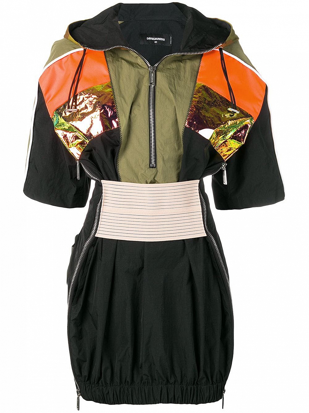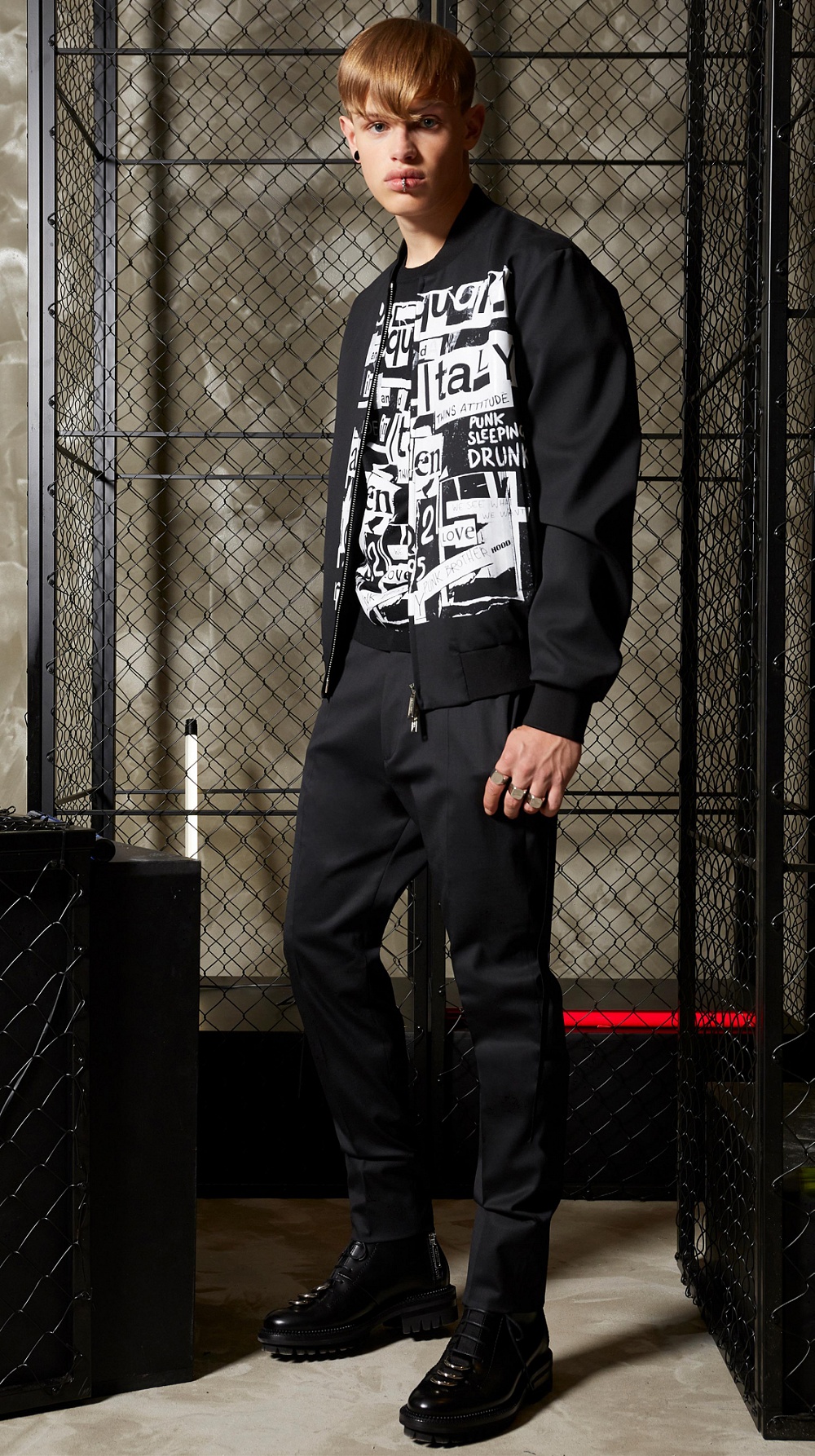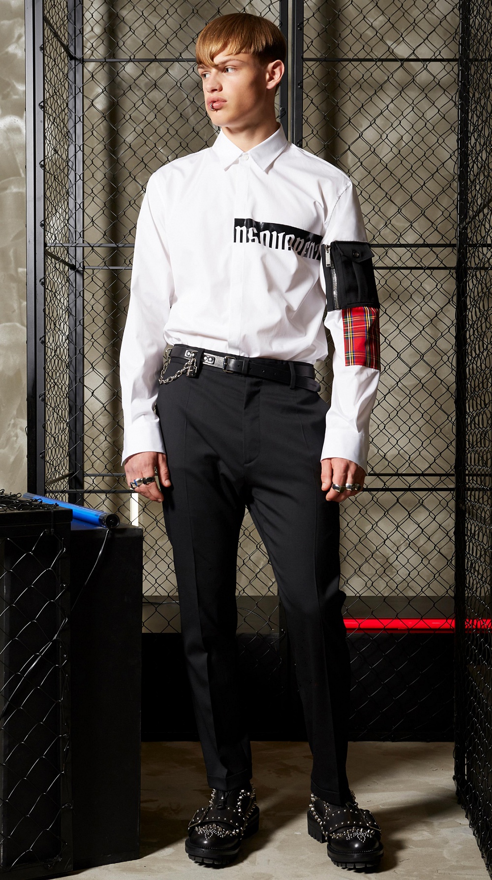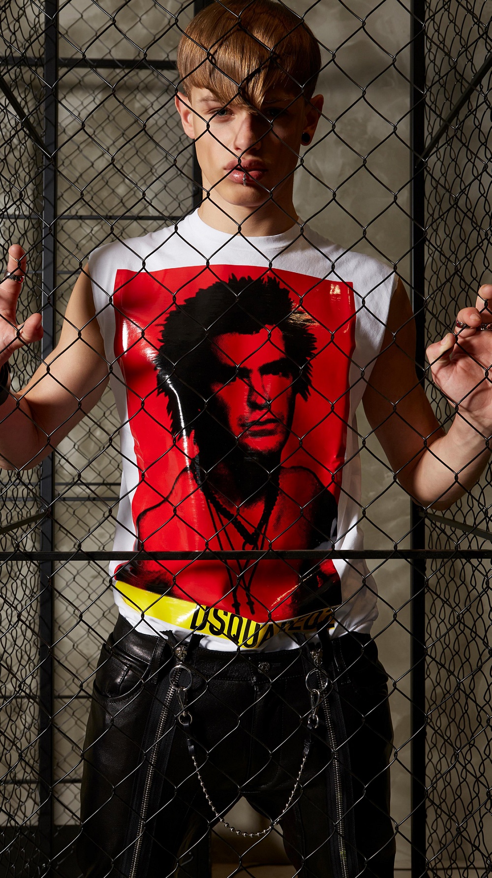 В своей новой весенне-летней коллекции братья Дин и Дэн Кейтены из итальянского бренда Dsquared2 совместили бунтарский рок-н-рольный дух с элементами набирающего популярность стиля warcore. Как женские, так и мужские образы напоминают об эпохе 90-х, когда в моде были брюки карго, в духе Лары Крофт, футболки с портретами рок-звезд и массивные кроссовки. В пару к ним дизайнеры предлагают носить мешковатые тренчи, лётные куртки и другие вещи в армейском стиле, выполненные из шелка и нейлона.
