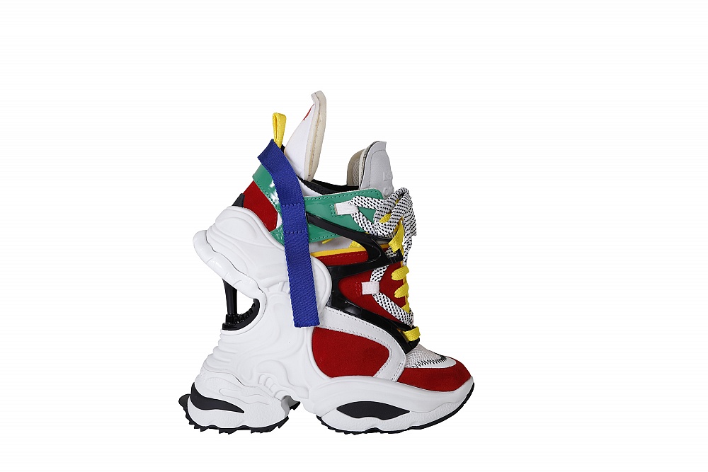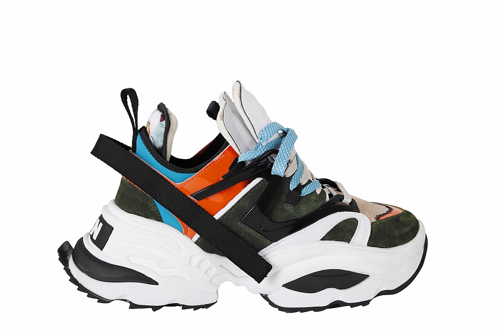 Эти street-воины Dsquared2 имеют романтическую окраску: вымытые шелковые вуали, короткие платья, майки и длинные юбки в оттенках слоновой кости и шалфея. Цветочный жаккард вставлен в женские брюки и спортивные парки для мужчин, отделанные светоотражающим кантом. Объект желания — это «гигантские» кроссовки: негабаритные с приподнятой спинкой и удлиненным языком, которые превращаются в двойные толстые туфли на танкетке. Для мужчин подготовлен свой вариант — сандалии с флуоресцентными деталями