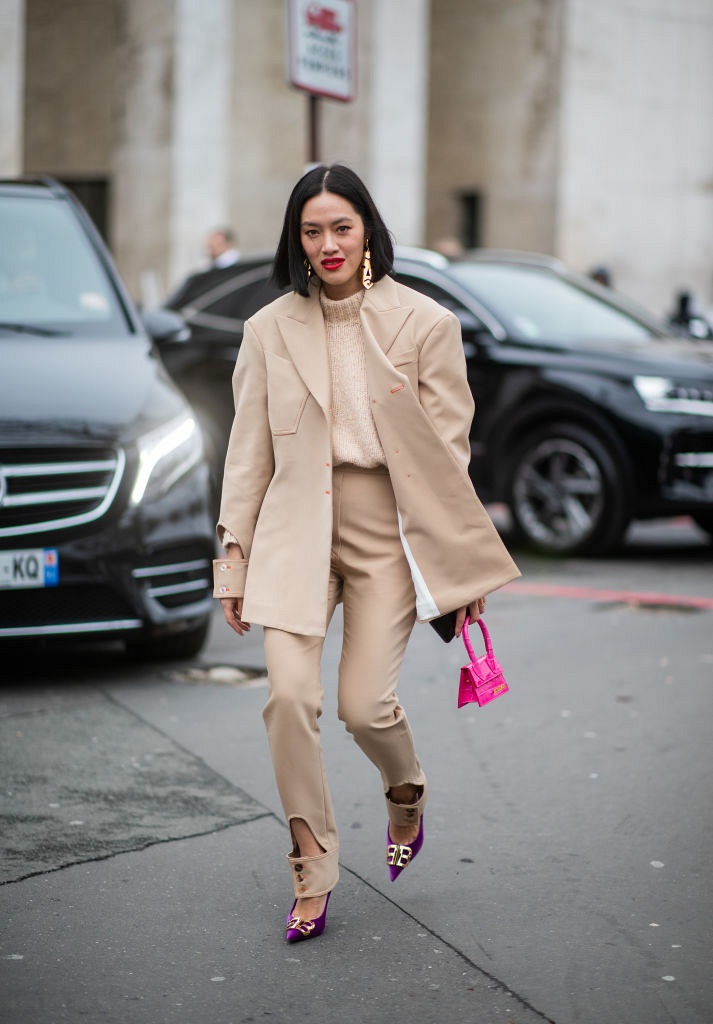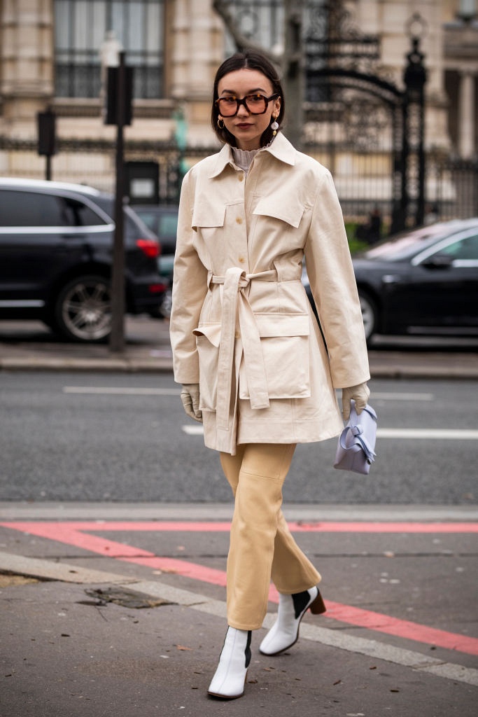 На показах SS'19 доминировали оттенки бежевого, розового и молочного, а их сочетание в одном образе — одна из самых модных тенденций. Такой прием легко воплотить в жизнь. Ключ в том, чтобы играть с пропорциями, внедряя вещи oversize, смешать несколько оттенков, создать total look в одном цвете и экспериментировать с текстурами. Идеально светлые цвета сочетаются с принтом анималье или клеткой, а любой яркий аксессуар, такой как шарф или сумка, прекрасно разбавит однотонный образ. Не стоит бояться дополнять look в светлых тонах черными вещами: можно выбрать темную обувь или аксессуары. Также можно сделать светлый цвет акцентом, если в образе доминируют яркие или темные вещи.