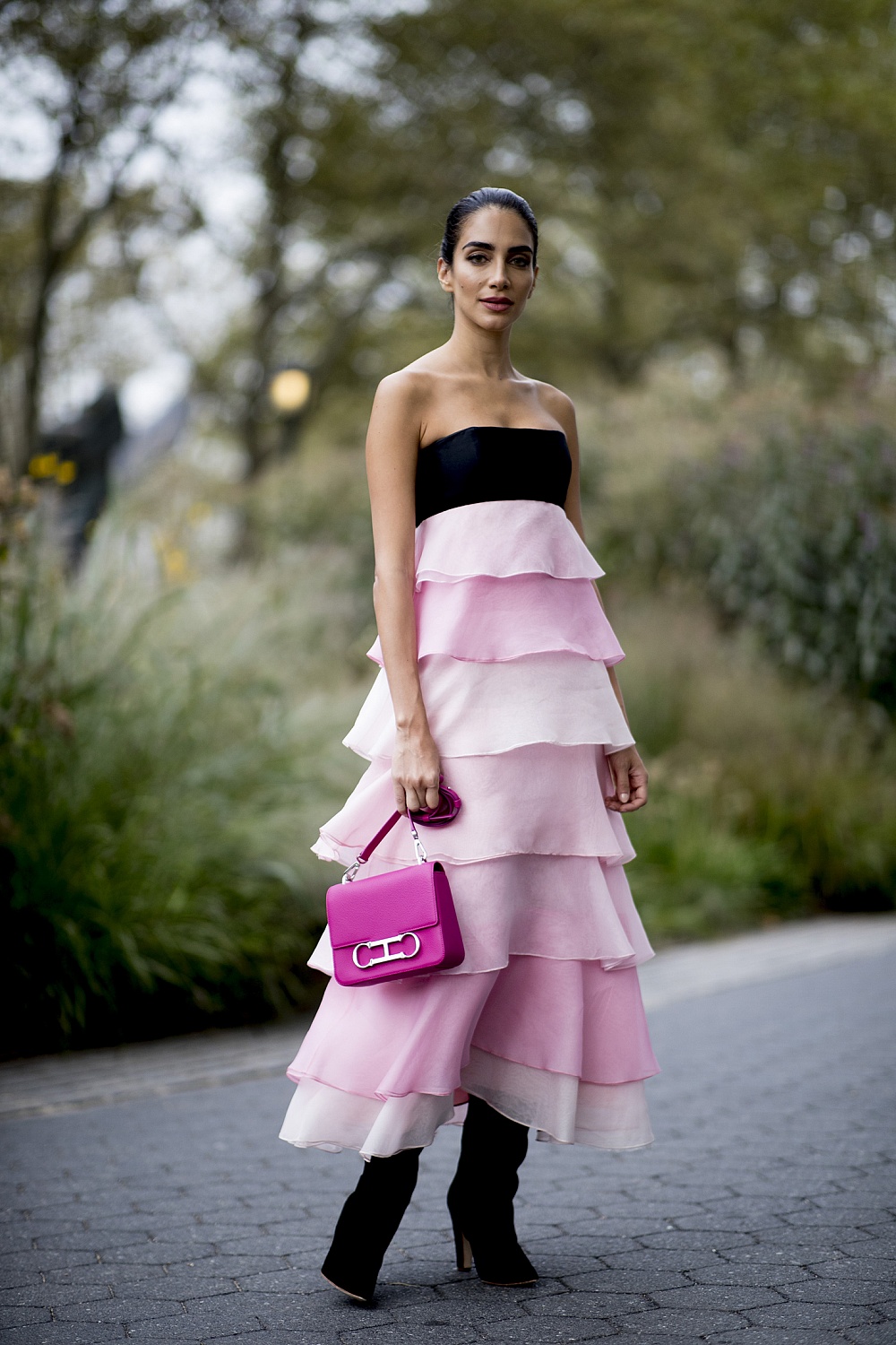 Нью-Йоркская неделя моды в самом разгаре и пока дизайнеры представляют на подиуме тренды будущего сезона, звезды street style наглядно демонстрируют, как носить самые актуальные цвета, принты и фасоны сезона настоящего. Берем на заметку!