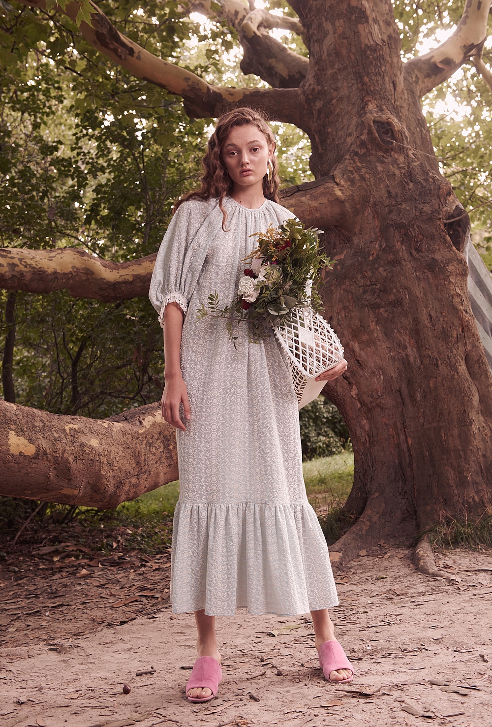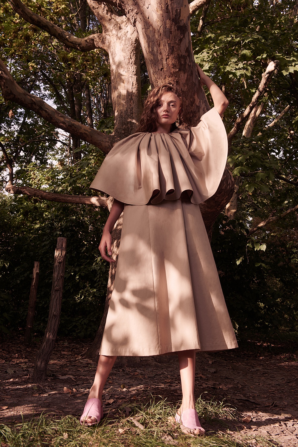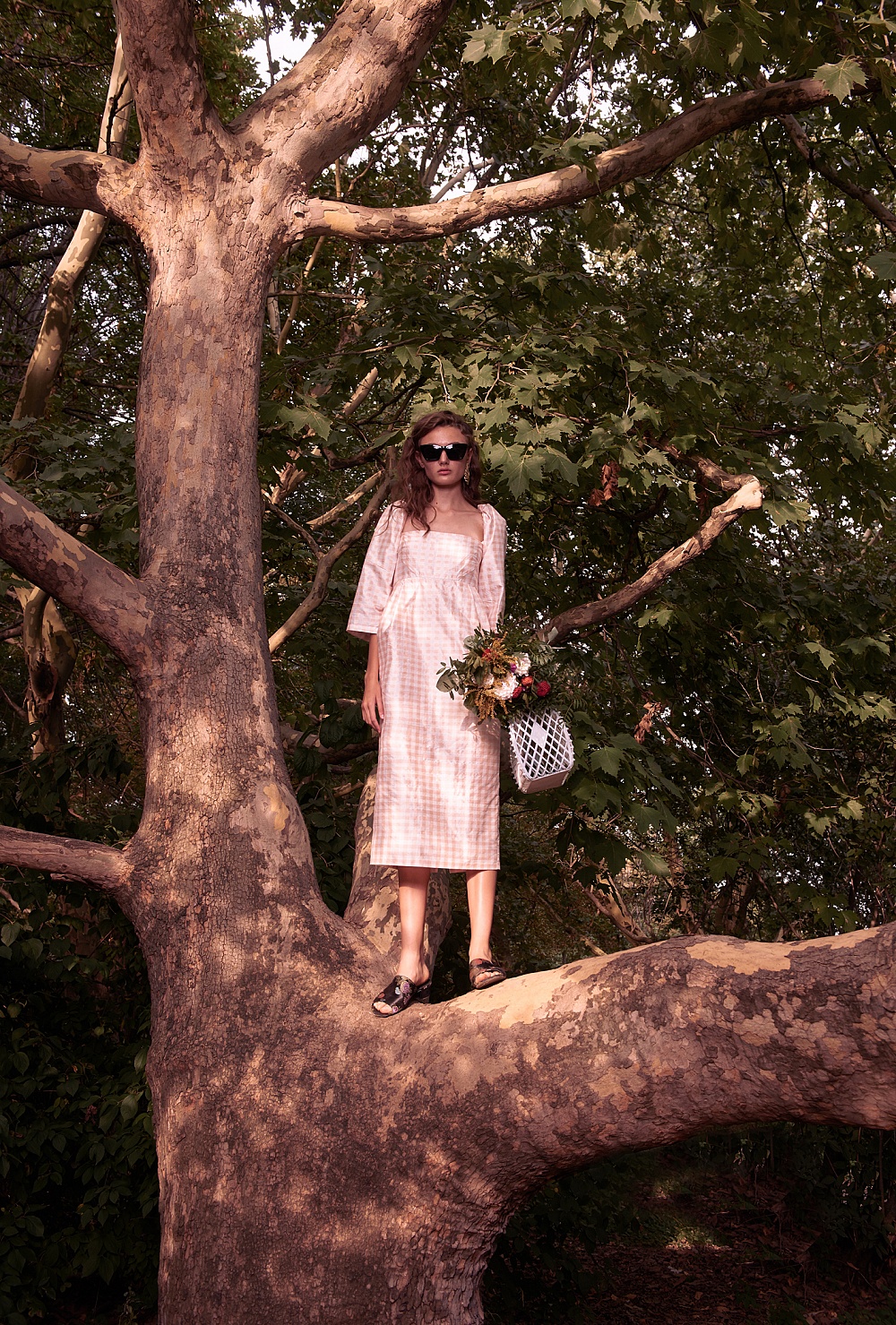 Атмосфера сада нашла свое отражение в ярких цветах (превалируют оттенки розового), принтах (на платьях распустились плоды и цветы инжира, бархатцы и черная смородина) и разнообразие тканей. В этом сезоне бренд работает с различными шелками: атласным, твиллом, чесучей и комбинацией шелка и коттона. Также Анастасия Рябоконь и Олеся Кононова обратились к тканям с набивным рисунком и шитьем. Основой коллекции стали платья – знаковые для бренда комбинации, корсетные и жакетные платья. Отличительной чертой нового сезона с точки зрения кроя стал акцент на линию плеч: дизайнерский дуэт представил серию образов с объемными рукавами на бретелях, которые можно спускать, а также платья с открытыми плечами и спиной.