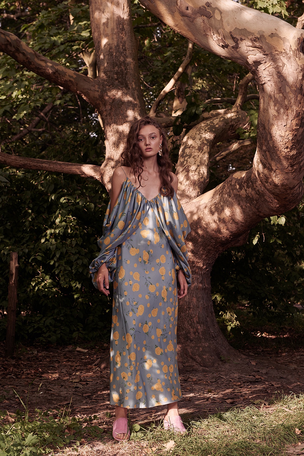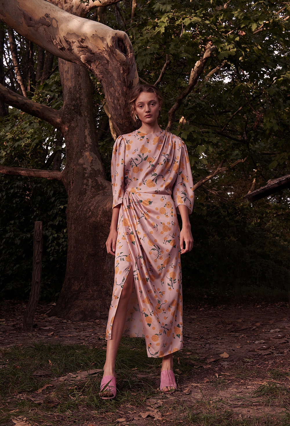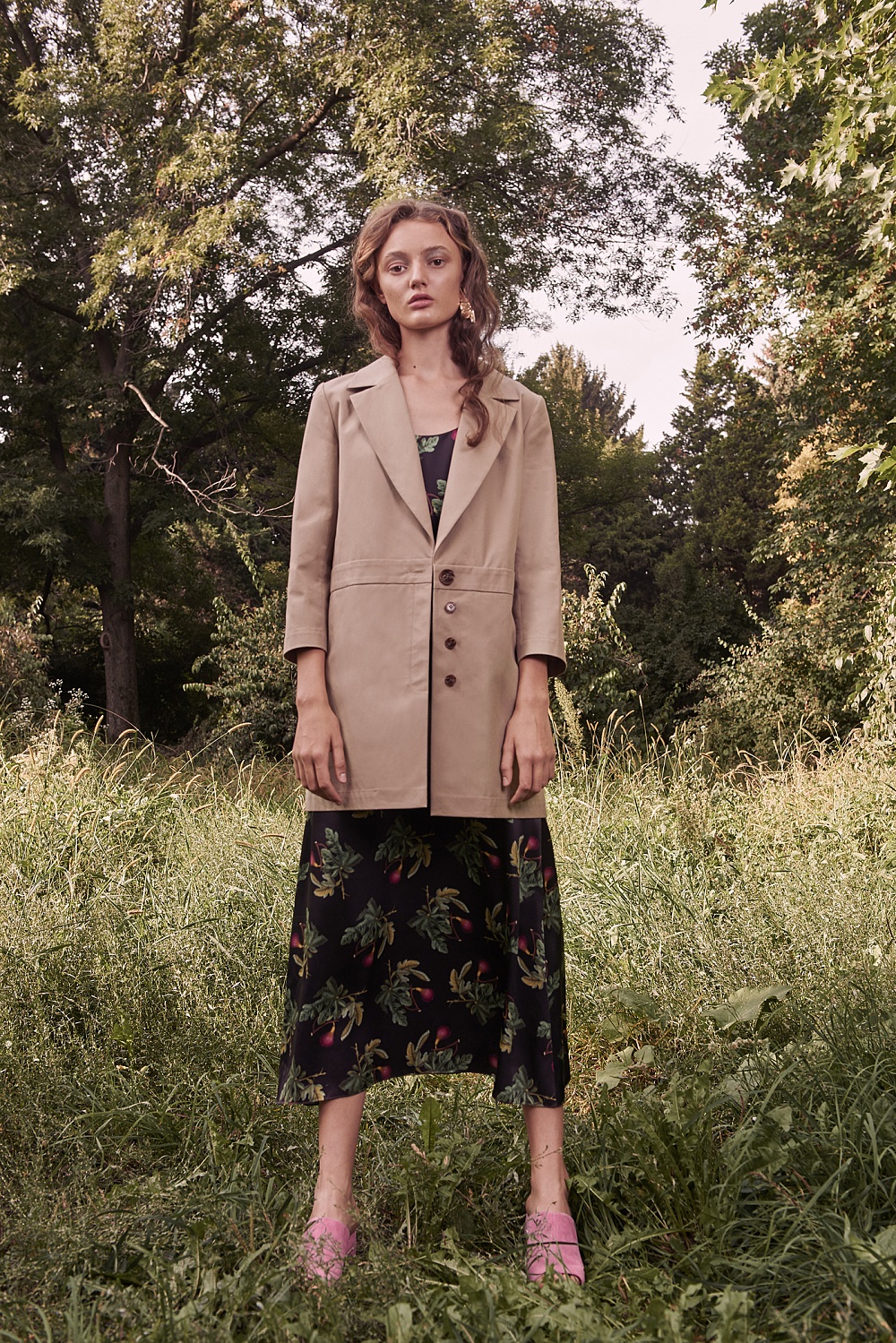 Атмосфера сада нашла свое отражение в ярких цветах (превалируют оттенки розового), принтах (на платьях распустились плоды и цветы инжира, бархатцы и черная смородина) и разнообразие тканей. В этом сезоне бренд работает с различными шелками: атласным, твиллом, чесучей и комбинацией шелка и коттона. Также Анастасия Рябоконь и Олеся Кононова обратились к тканям с набивным рисунком и шитьем. Основой коллекции стали платья – знаковые для бренда комбинации, корсетные и жакетные платья. Отличительной чертой нового сезона с точки зрения кроя стал акцент на линию плеч: дизайнерский дуэт представил серию образов с объемными рукавами на бретелях, которые можно спускать, а также платья с открытыми плечами и спиной.
