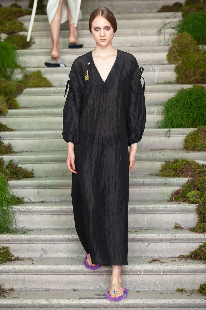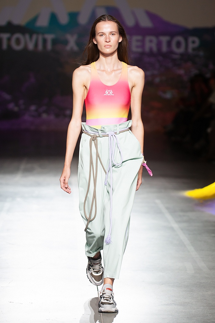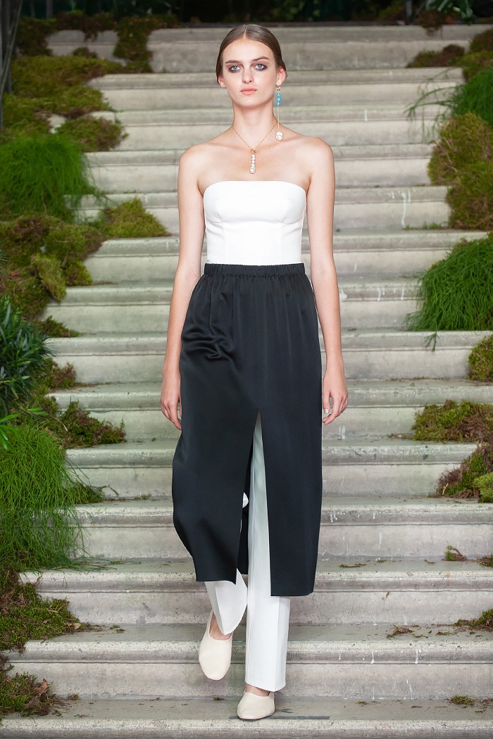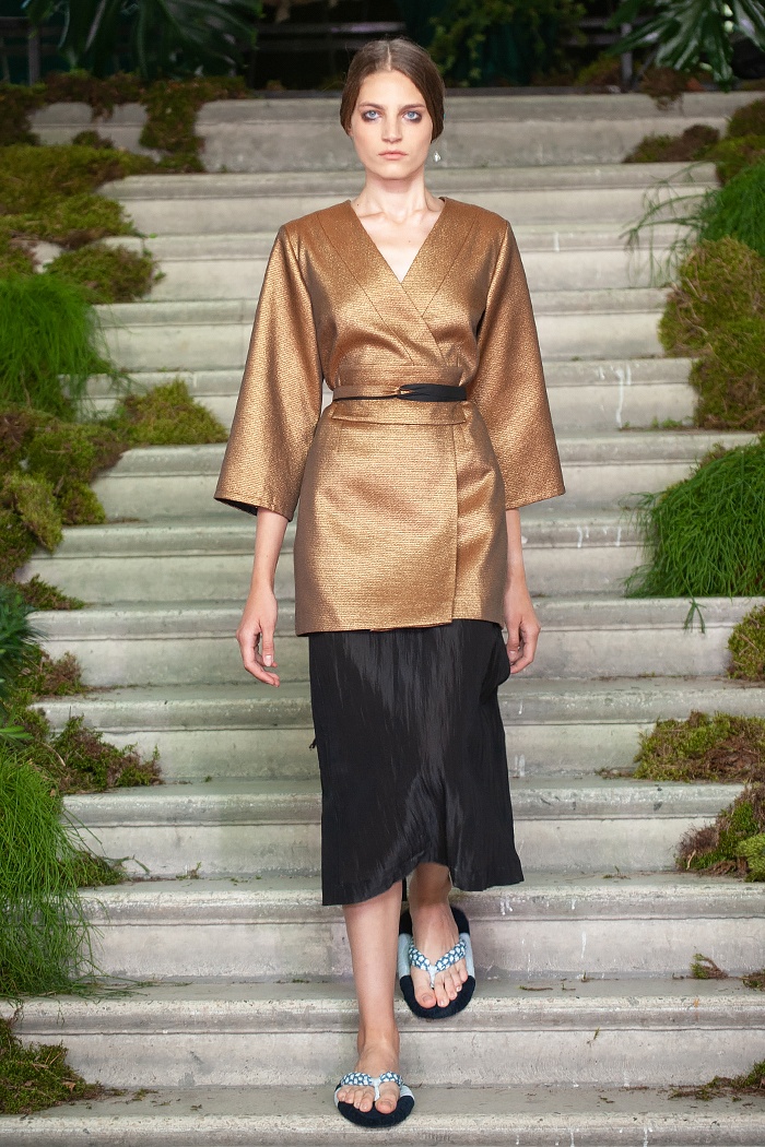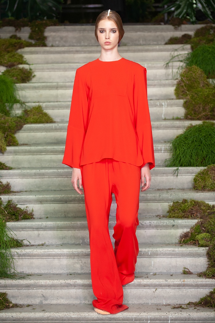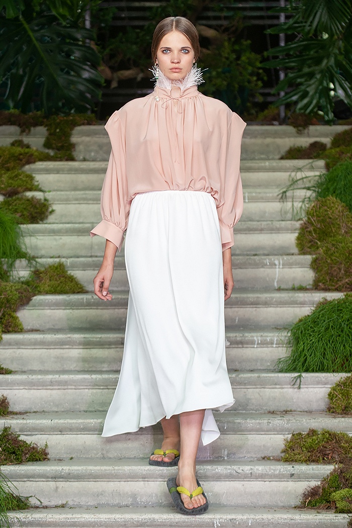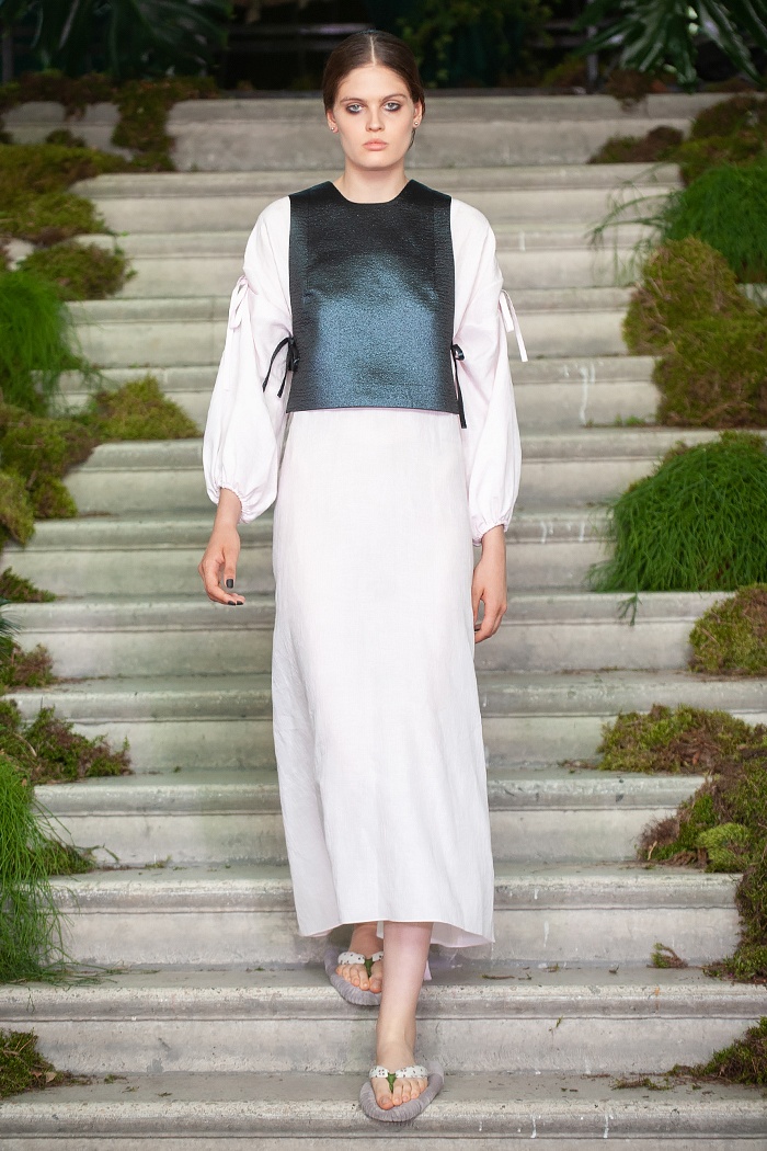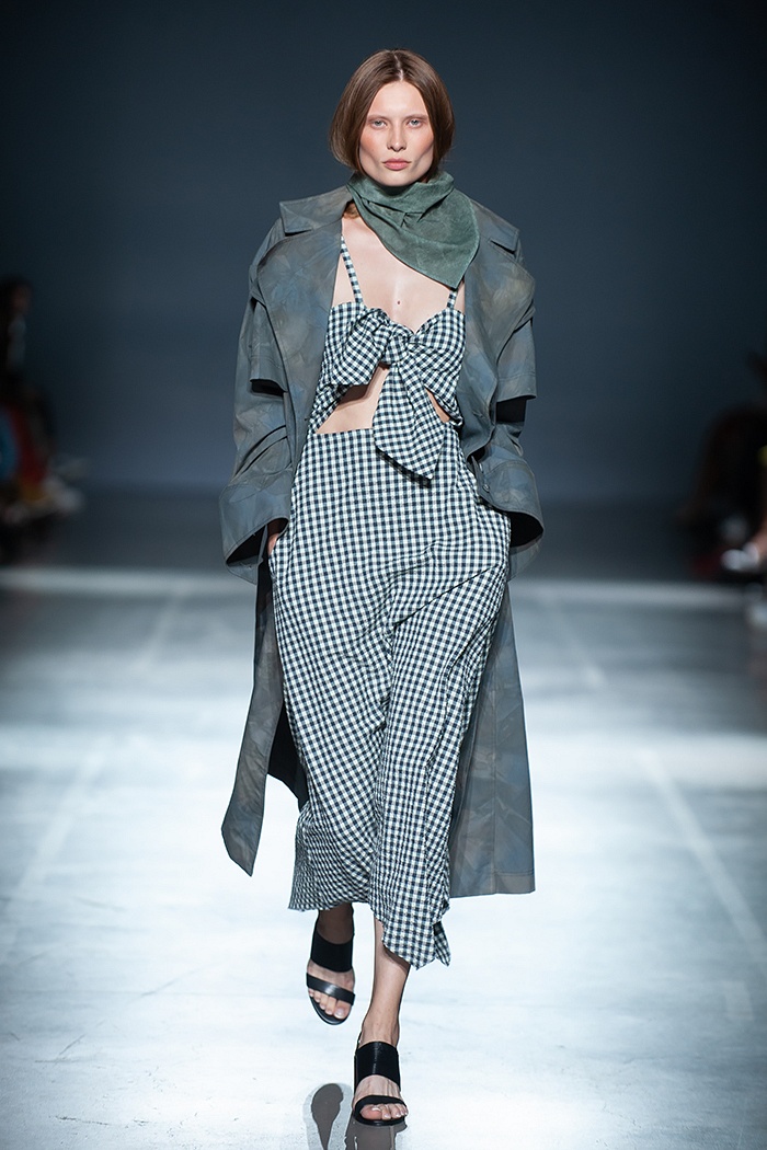 В этом сезоне меня приятно порадовал творческий дуэт Katerina Kvit / T.Mosca. Многослойность и сложное (но очень красивое) сочетание бежевого, ярко-салатового, оранжевого и розового цветов в первом образе из их коллекции выглядит свежо и очень актуально.