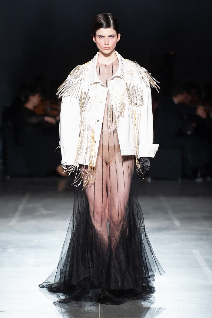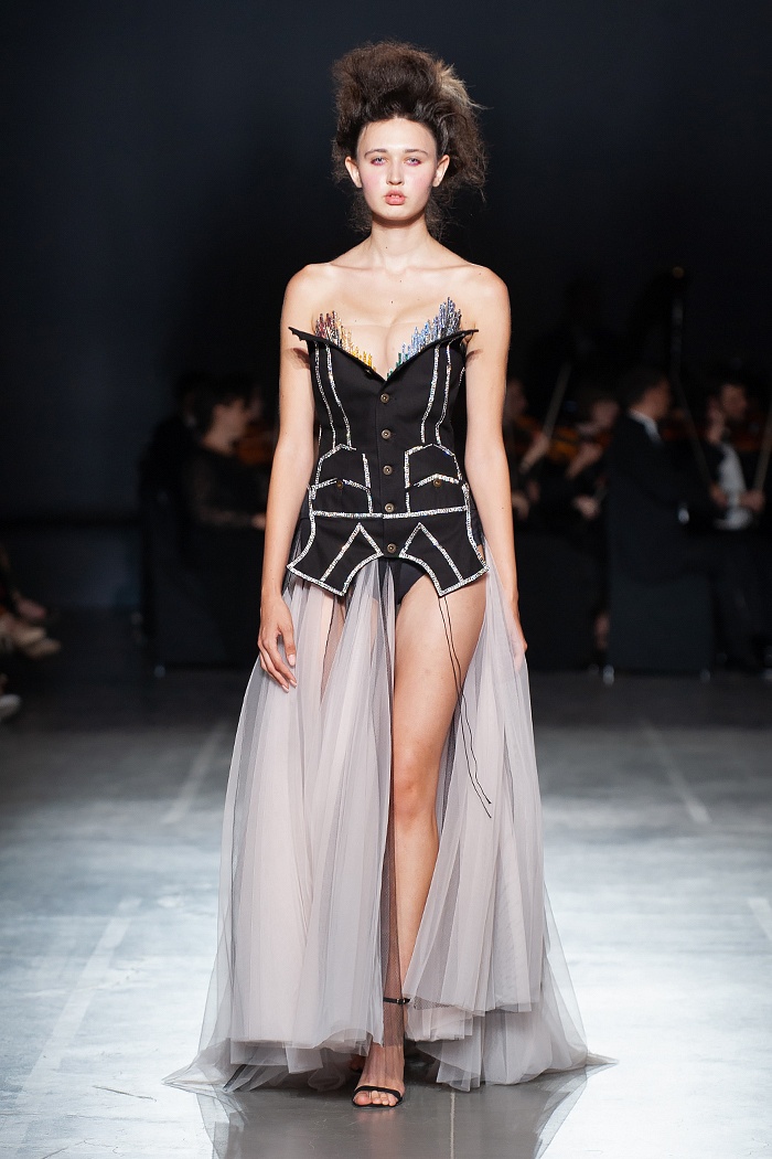 Эту номинацию я также хочу отдать Ивану Фролову. Его шоу в стенах «Мыстецького арсенала» было незабываемым. Модели в изысканных нарядах, расшитых вручную, будто сошедшие с архивных черно-белых фотографий родом из XVIII века, возвращали публику в реальность своими «интеллигентными провокациями»: прямо на подиуме девушки резко распахивали одежду, демонстрируя белье и закрытые части тела. Действо происходило под живое сопровождение симфонического оркестра. В этот вечер мы стали свидетелями настоящего праздника кутюра.