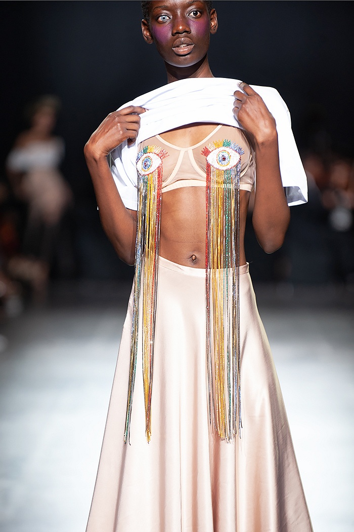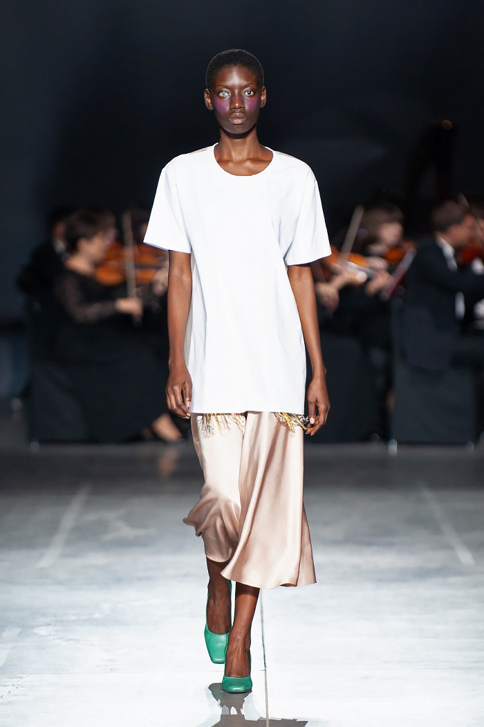 Самым эмоциональным для меня в представленном сезоне оказалось шоу Elena Burenina. Очень импонирует то, что Лена не просто умеет создавать красивые вещи, а всегда закладывает в них особый сильный смысл. Показанная коллекция под названием «Эффект бабочки» стала своеобразным манифестом, который призывает человека поверить в свои силы и осознать собственную значимость в нашем мире. И кажется, такой настрой впитала каждая вещь, которая появлялась на подиуме.