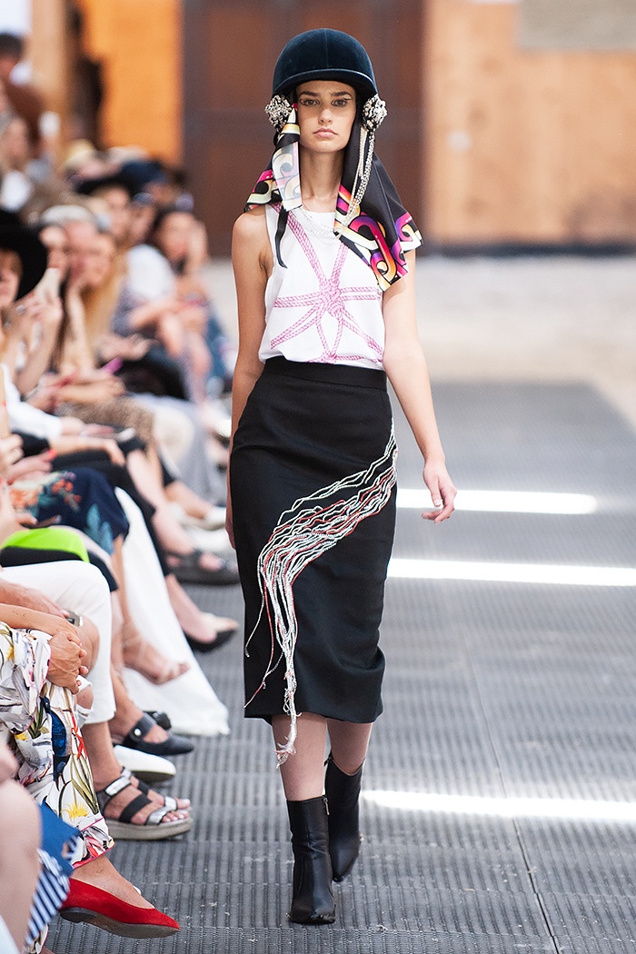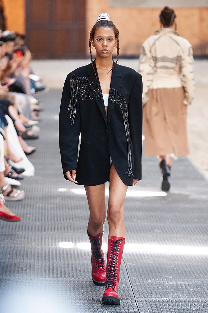 Кінські перегони, які Жан Гріцфельдт влаштував у заміському парково-готельному комплексі Equides Club. Жакети із зображенням канатів, бомбери з полотняними вузлами (відсил до кінської упряжі), жінка-кентавр на футболках худі, а також штучне волосся, стилізоване під гриву, миттю перенесли гостей показу до британського містечка Аскот. Король епатажу, Жан Гріцфельдт знову був на коні (і цього разу цілком буквально!).